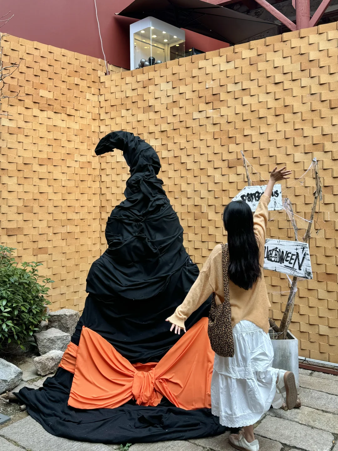 好好看好好看~ 大帽子有种哈利波特的感觉 (要穿过面包店 在里面的庭院里) 路边还有好多小🎃和☠️ -