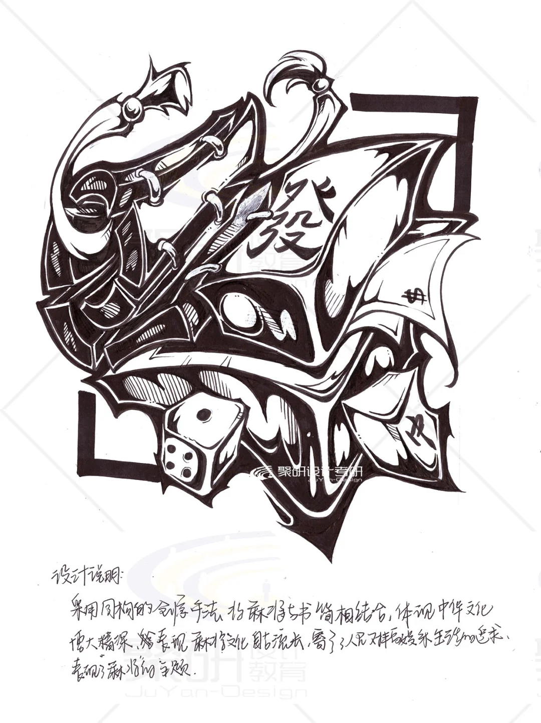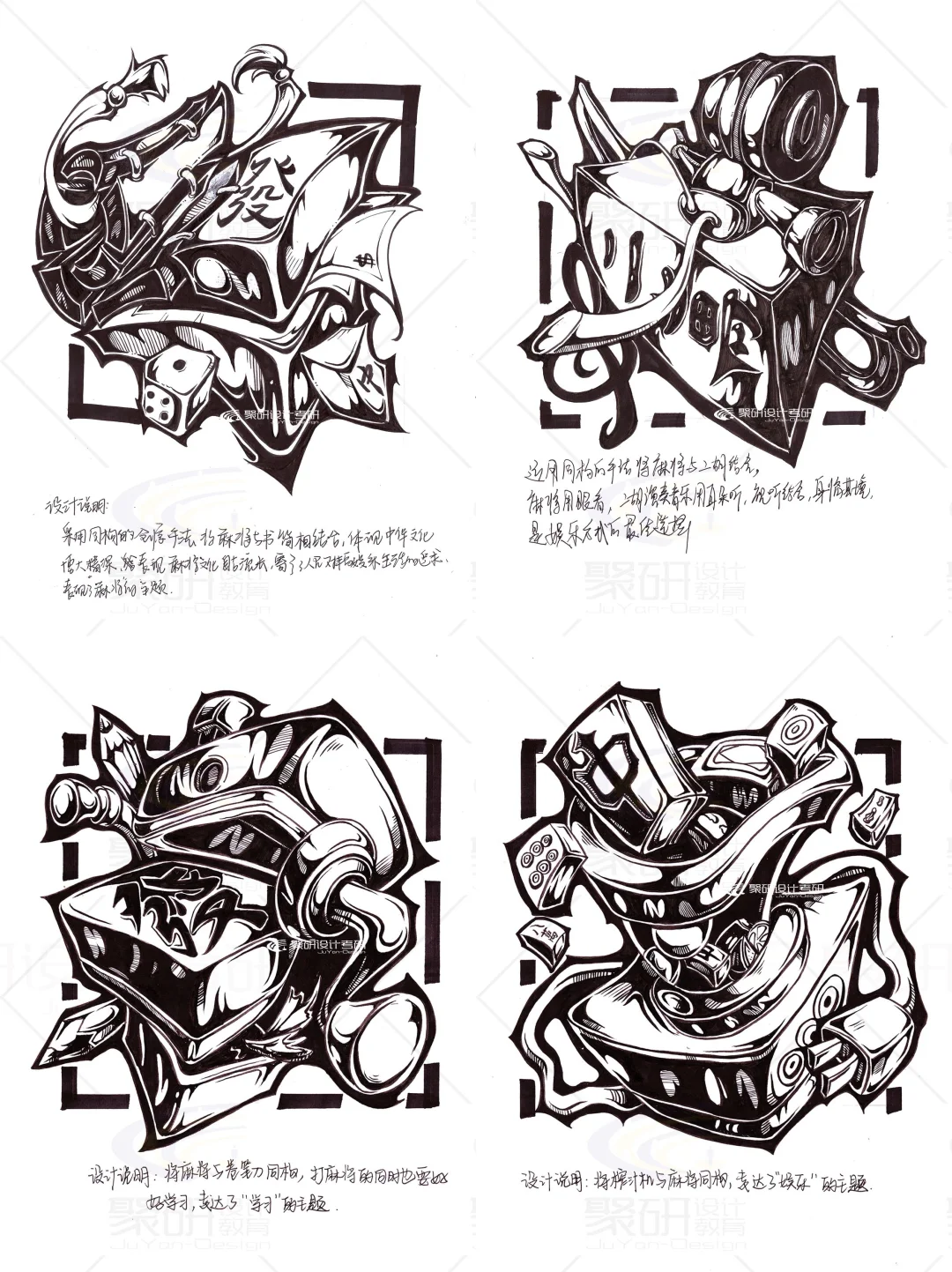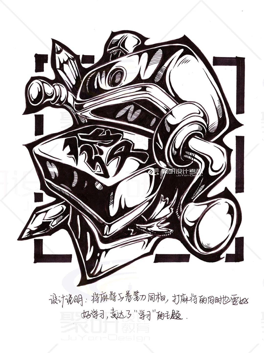 【麻将】元素齐工大黑白创意设计手绘②