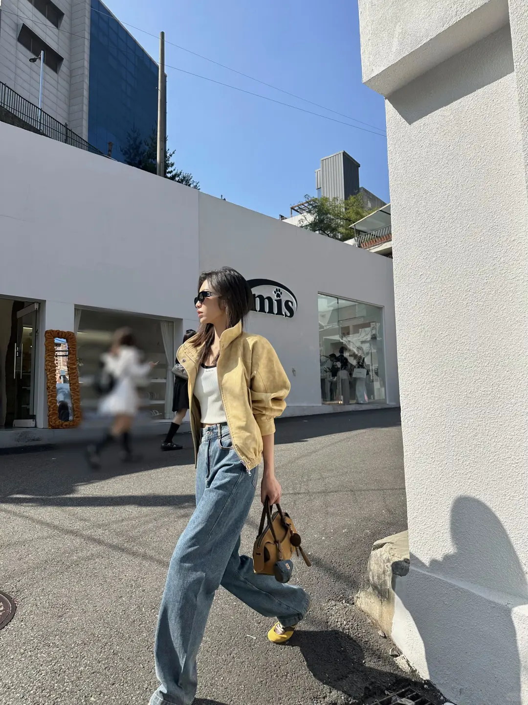 🌟 今天我选择了一件非常抢眼的黄色皮衣外套