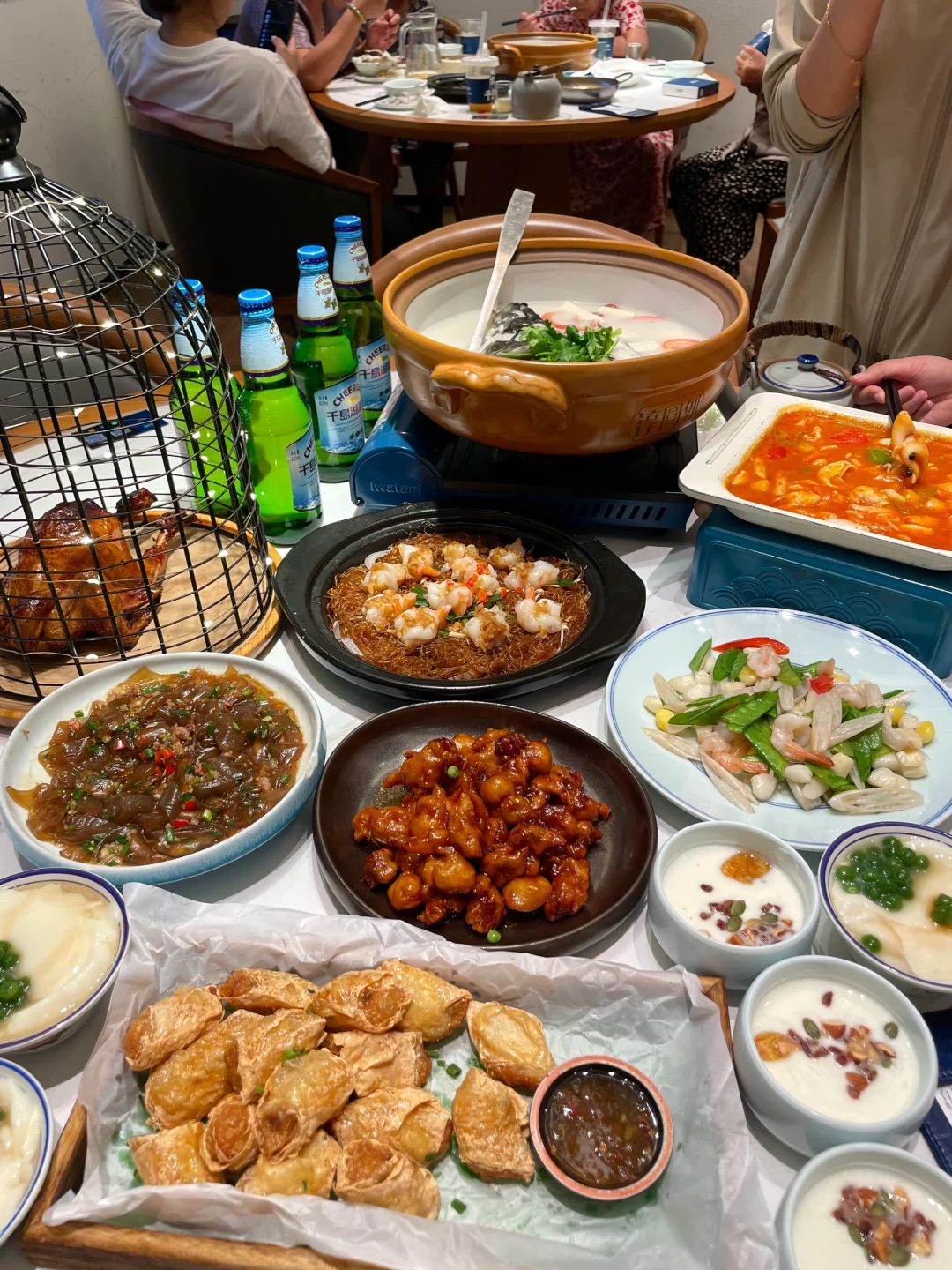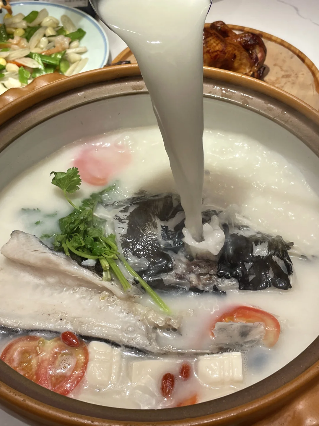 当地有名餐厅🍴饭点店里座无虚席!! 砂锅浓汤鱼头✔️汤底奶白浓郁,很鲜!鱼肉鲜嫩爽滑,豆腐特别嫩!! 鲜肉野娇娇✔️第一次吃,滑滑糯糯的口感很Q弹! 辣烧鲜汁鱼泡✔️香辣嫩滑的鱼泡巨巨下饭🍚