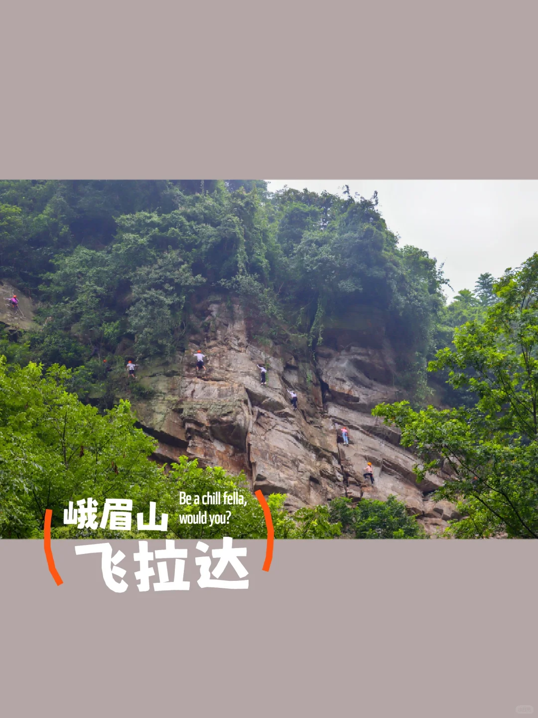 [六R]峨眉飞拉达。位于川主乡内,进山大道川零路五公里处,悬于峨眉山峭壁之上,是体验刺激的攀岩运动的好去处。