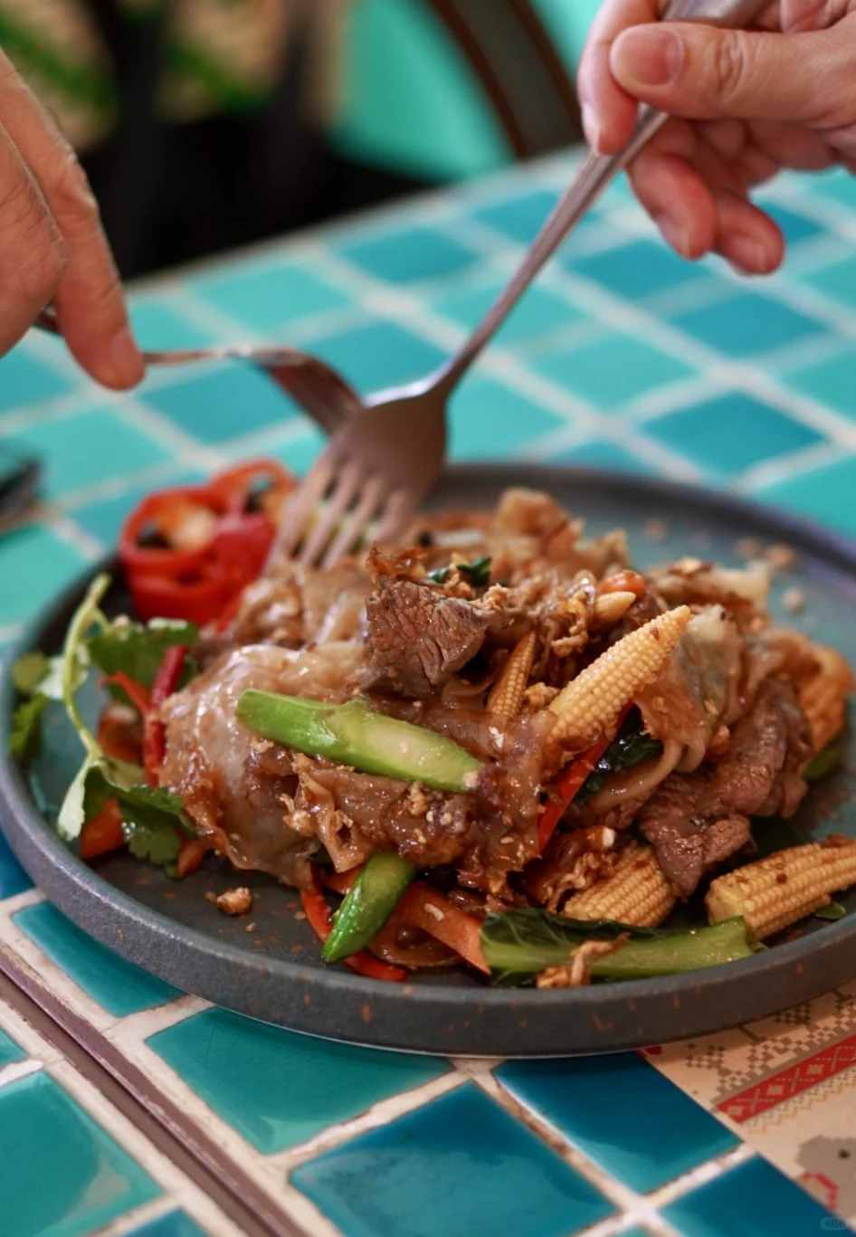 跟干炒牛河区别很大,但也是一份令人无法拒绝的碳水。宽河粉烟韧弹牙、薄而透亮,牛肉用的大片多汁的和牛,配菜足足占了一半,咸甜酱汁既入味质地又很干爽,是种通俗直接、轻轻松松就能享受的好吃。
