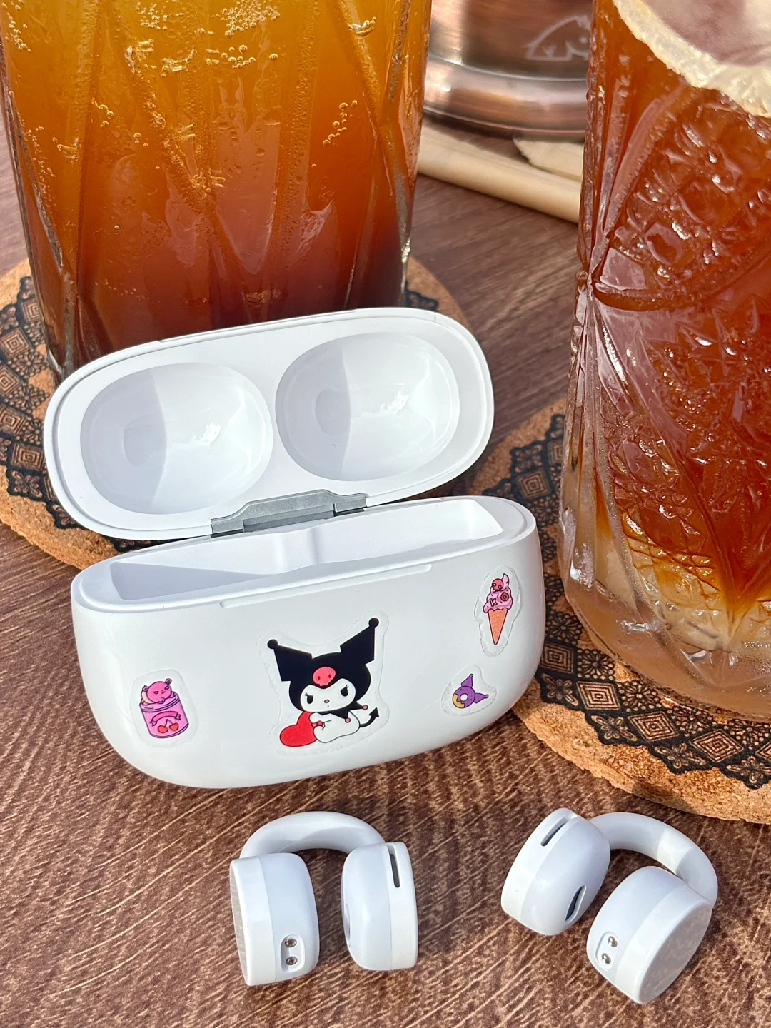 头一回见这种造型的无线立体开放式耳机🎧好可爱又别致!! . 耳机整体很轻盈~亲测佩戴🈚️不适感 戴着听音乐🎵看剧耳朵一下午都毫无压力! 音质清晰流畅 小耳朵星人闭眼冲!!🌟 . 72小时续航还显示电量🔋不用担心没电,可以随时冲! 适合多种蓝牙设备!就算运动🏃也稳固不容易掉
