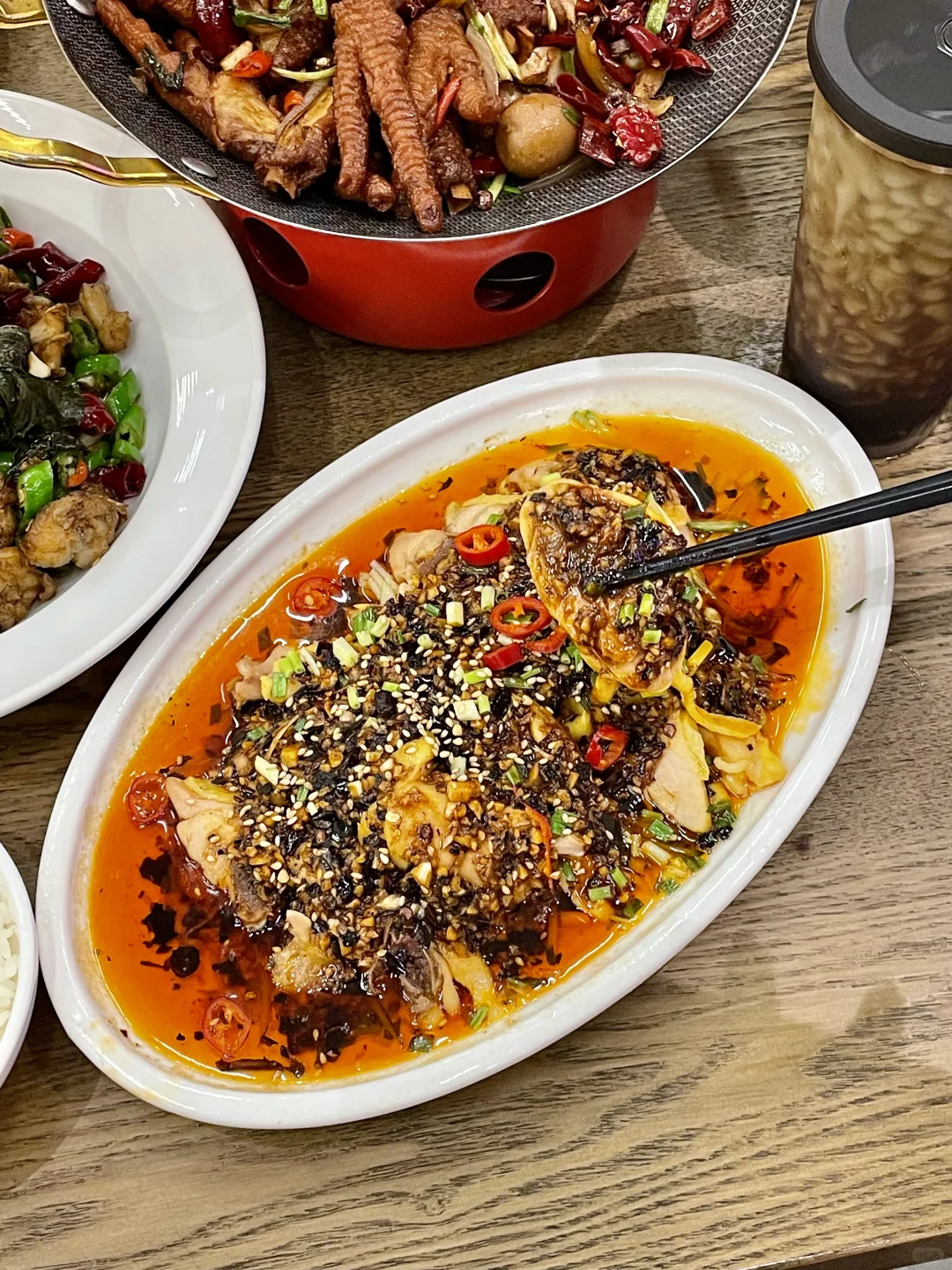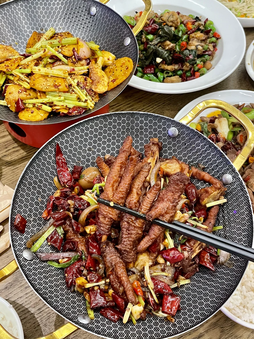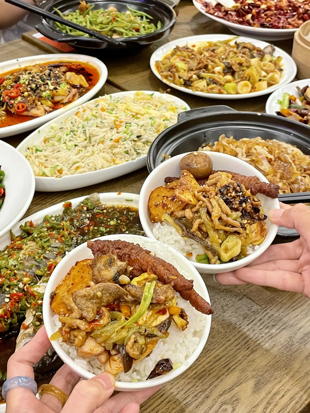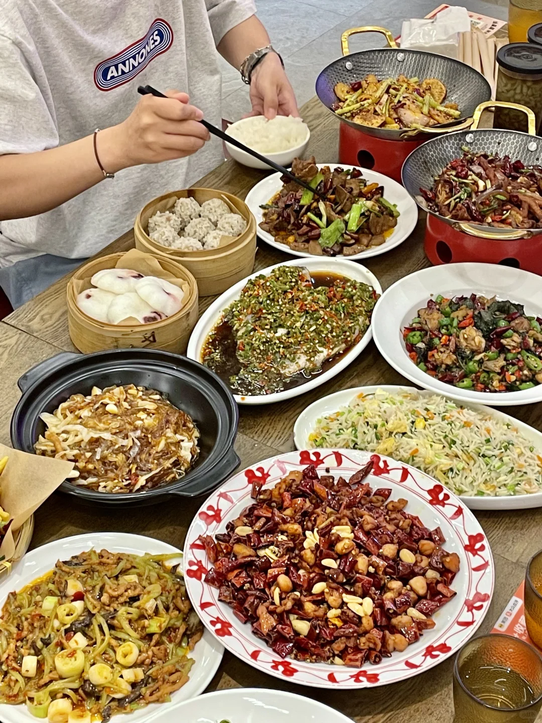 感谢大学生带路 吃到了好便宜的下饭小馆🤤 带着朋友来吃 点了整整两大桌! - 一抿脱骨的软糯鸡爪 下饭一绝的口水鸡 还有葱香蛋炒饭 一定要点杯红糖凉虾搭配着吃👍