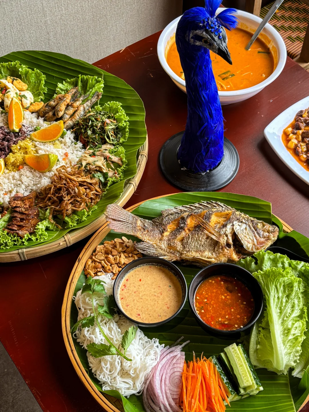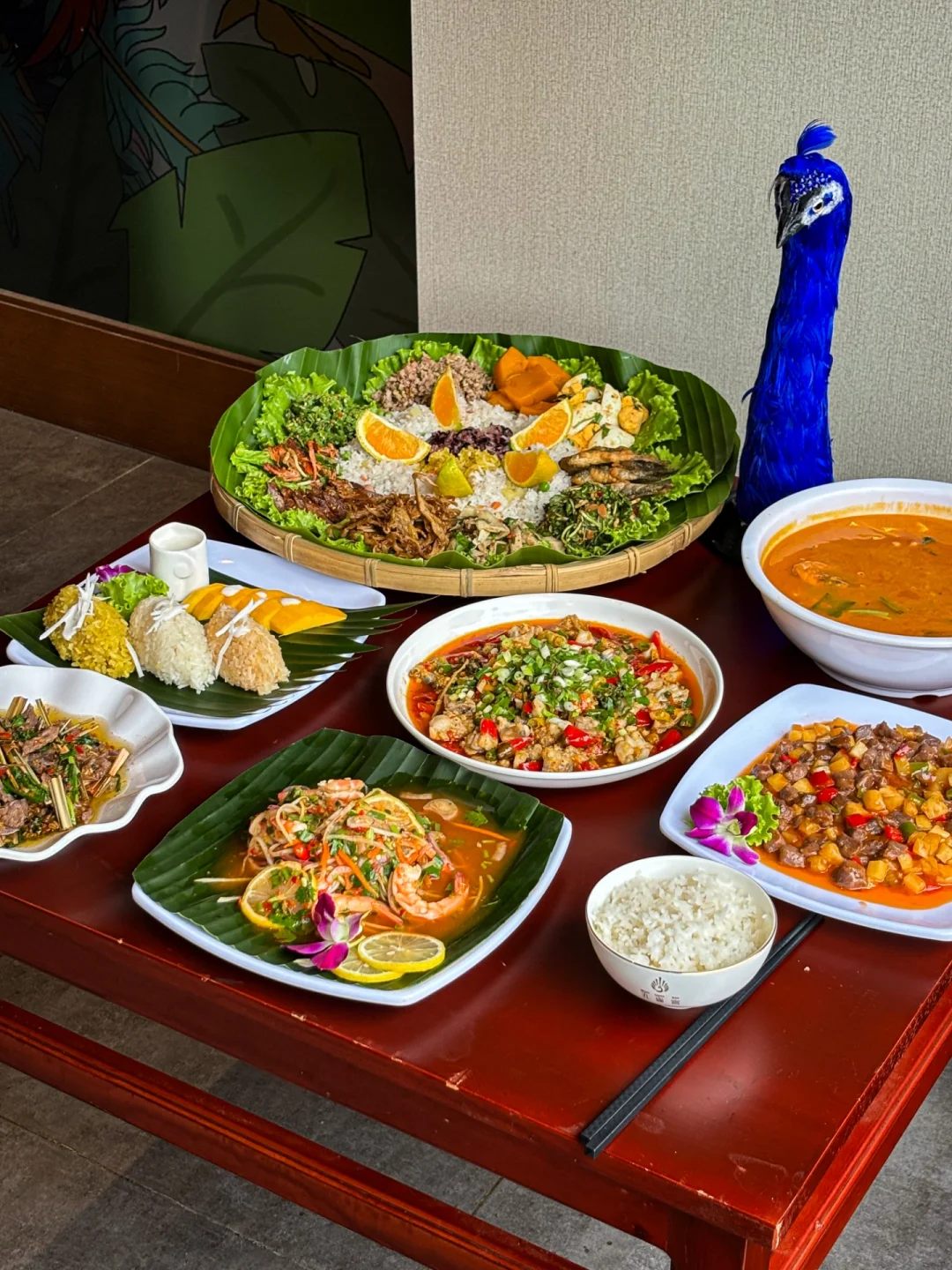 孔雀宴手抓饭,有十多种不同的傣味特色!孔雀造型还真的很应景😂跟朋友一起吃觉得挺有意思的~
