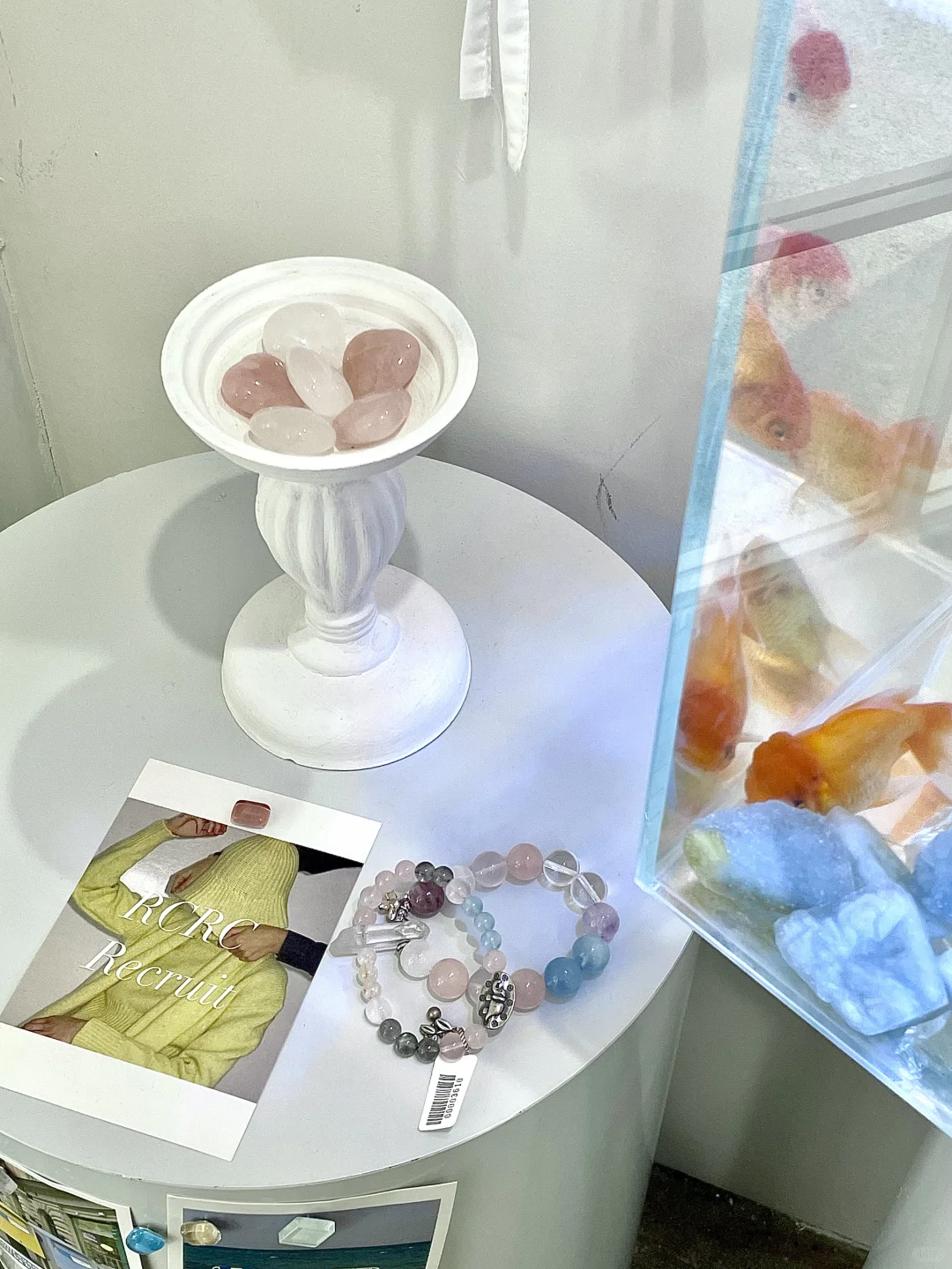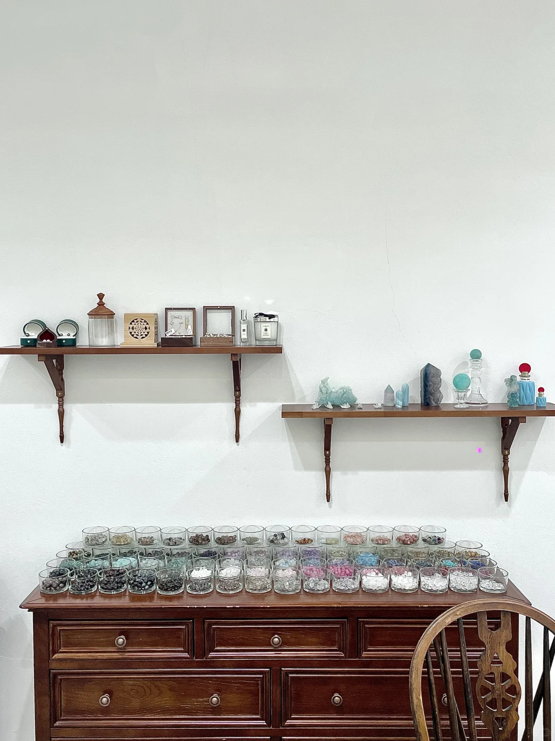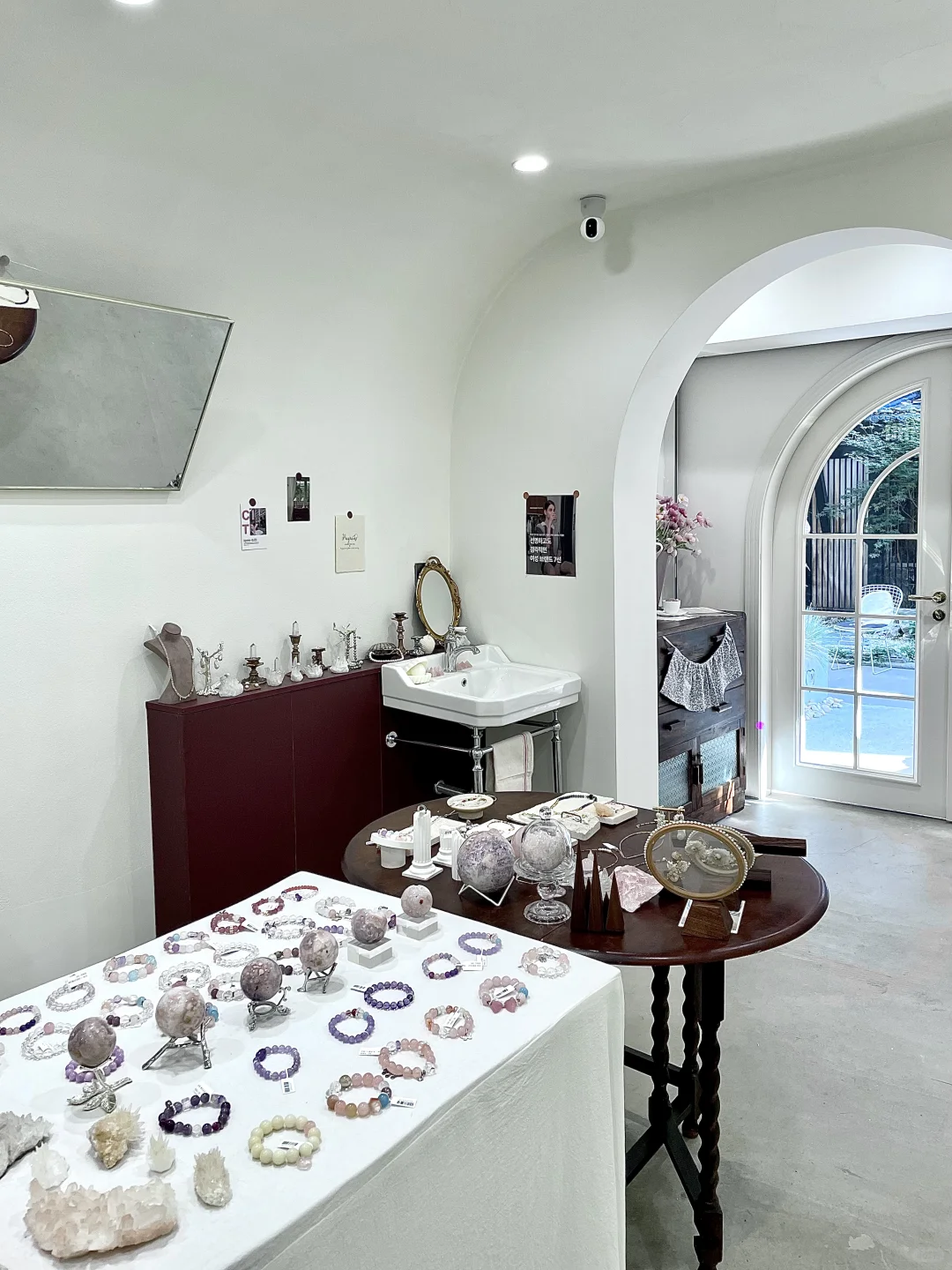 又发现心水小店🔮🫧 在花园道的小巷子里💐 🕌门头很像欧式小花园 店主审美超好 店里的设计很ins 各种水晶手链戒指基本什么风格都有 有一块区域可以diy🪡 根据自己的五行、星座、生肖随意搭配! 试戴了好几款都好喜欢😝 最后两张纸拿下发财水晶🔮 嘿嘿寓意深得我心!