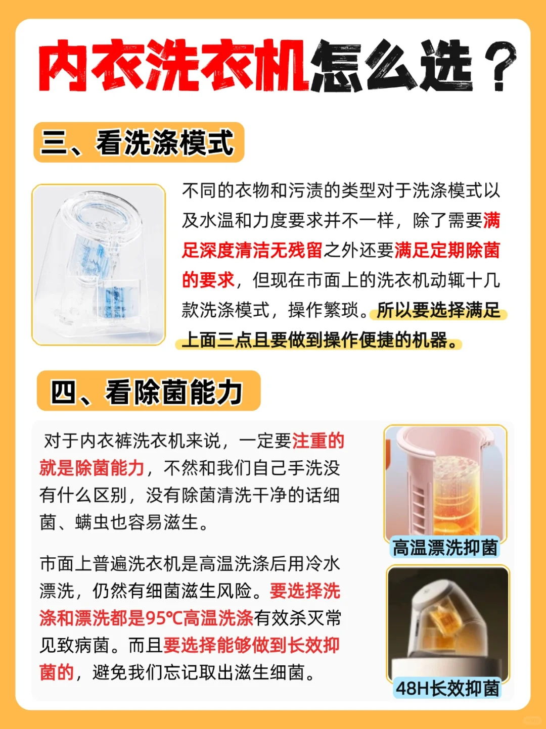 除了需要满足深度清洁无残留之外还要满足定期除菌的要求,操作便捷的机器更好!女生使用建议选择带有血渍洗模式的,特殊时期的内裤也能轻松应对。