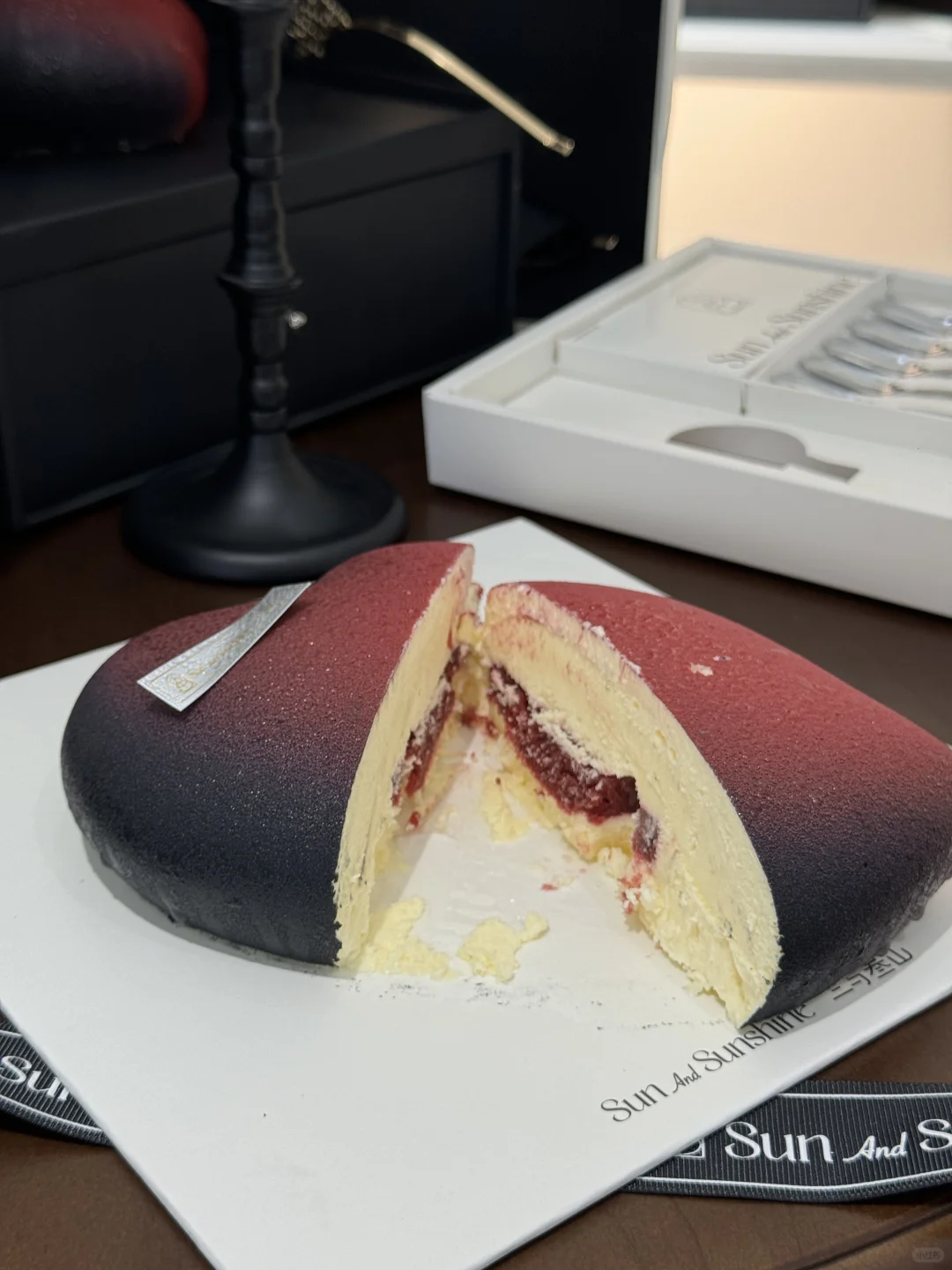 果然没有失望!打开盒子的瞬间惊喜到我了~一眼相中「玫瑰之心」 实物好像一件艺术品 就是如此的 高级!高级!高级! 生日、纪念日或是情侣约会 这妥妥的颜值担当啊!!! 蛋糕切开层次感很强 吃起来像奶油冰淇淋 冰凉凉的 内馅儿带有微酸的莓果酱 融合的超好 和朋友都觉得好吃 而且完全不腻!!