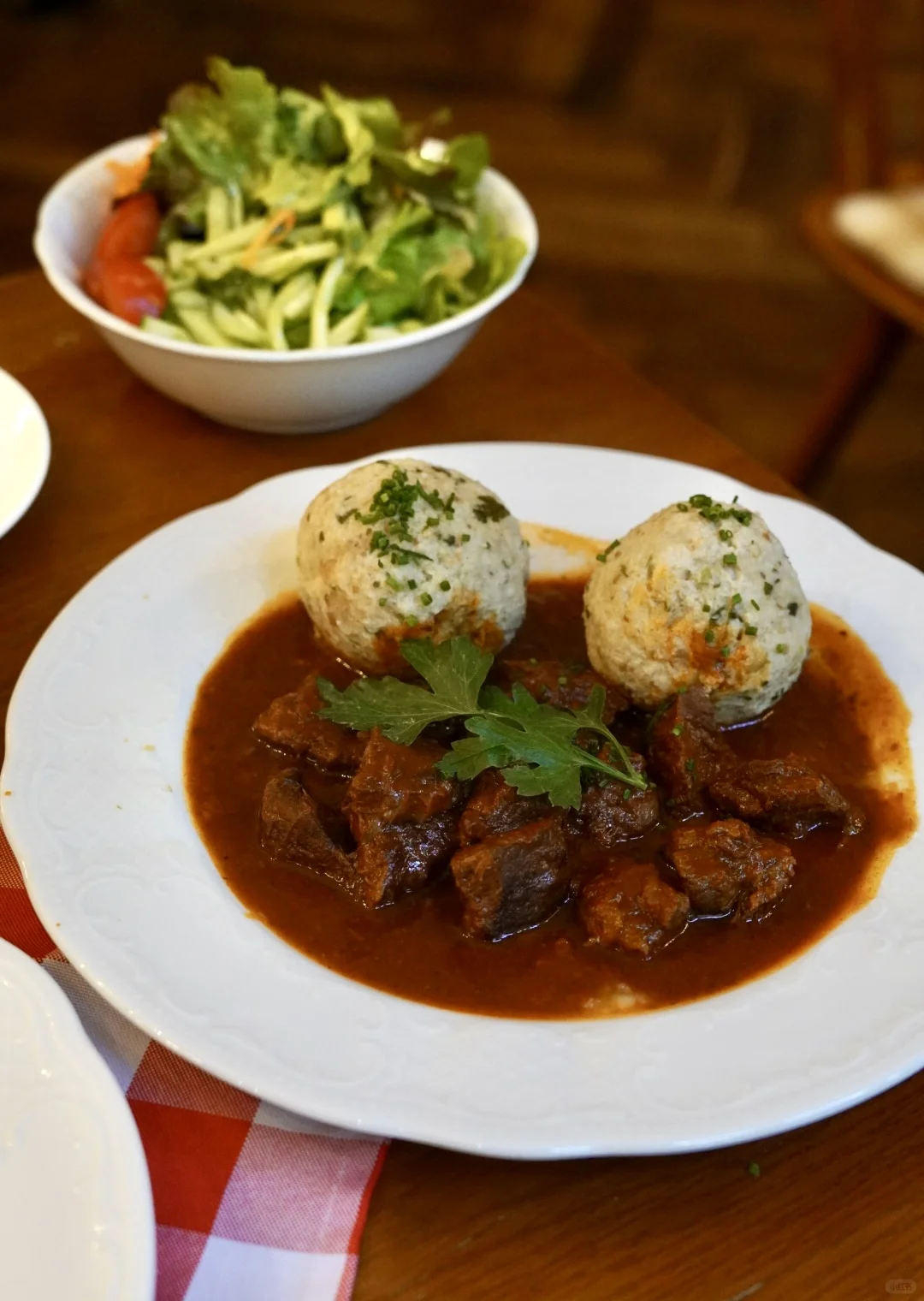 经典的巴伐利亚啤酒炖牛肉,牛肉大块扎实,嚼起来咸香多汁、韧性十足。