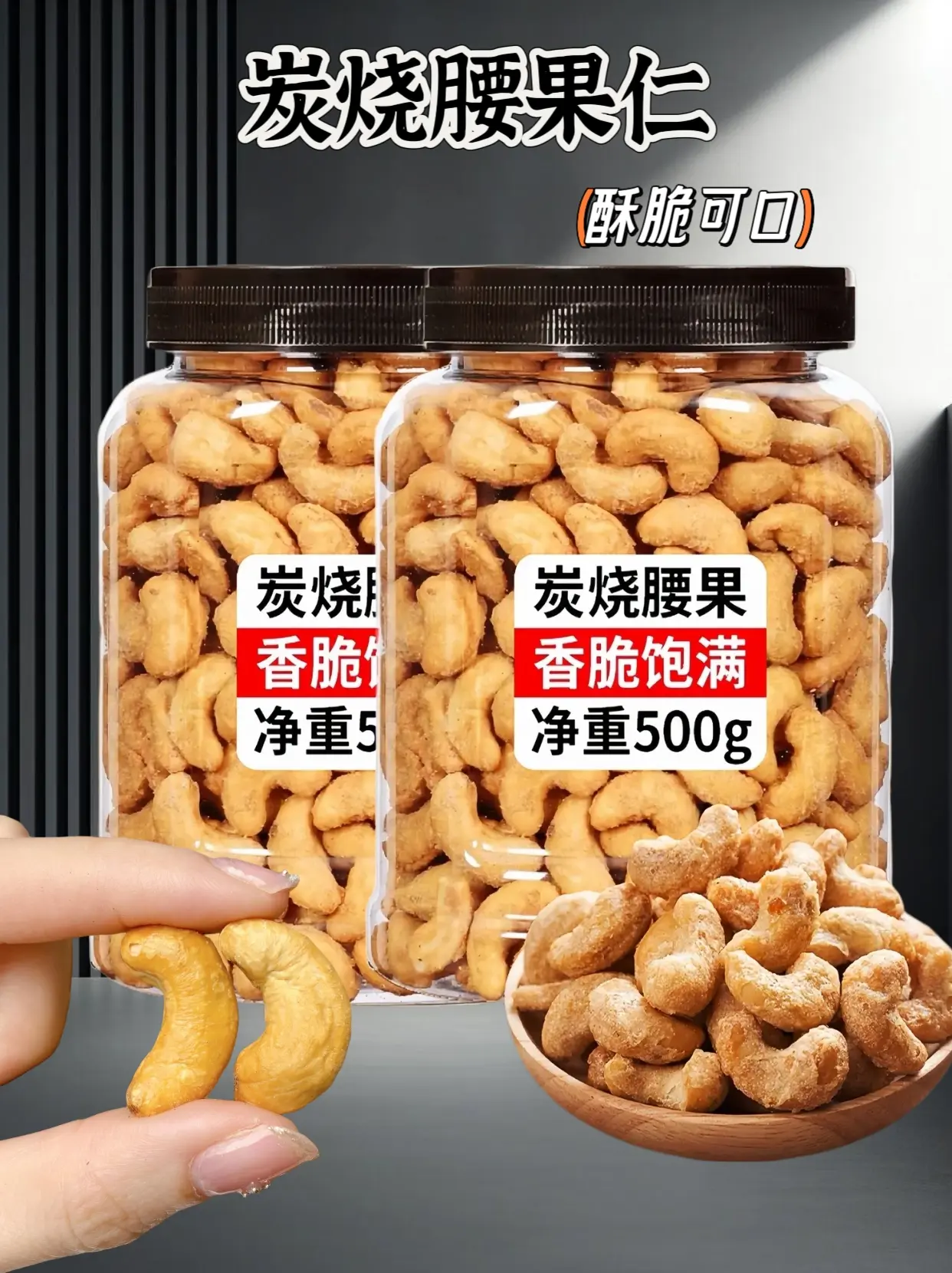 家人们!谁还没吃过这种炭烧腰果!非常健康美味的一款零食,它是由腰果经过炭火烘烤而成的,它可以作为零食单独食用,也可以配各种饮料一起享用,吃起来酥脆可口,越嚼越香,一整个爱住!