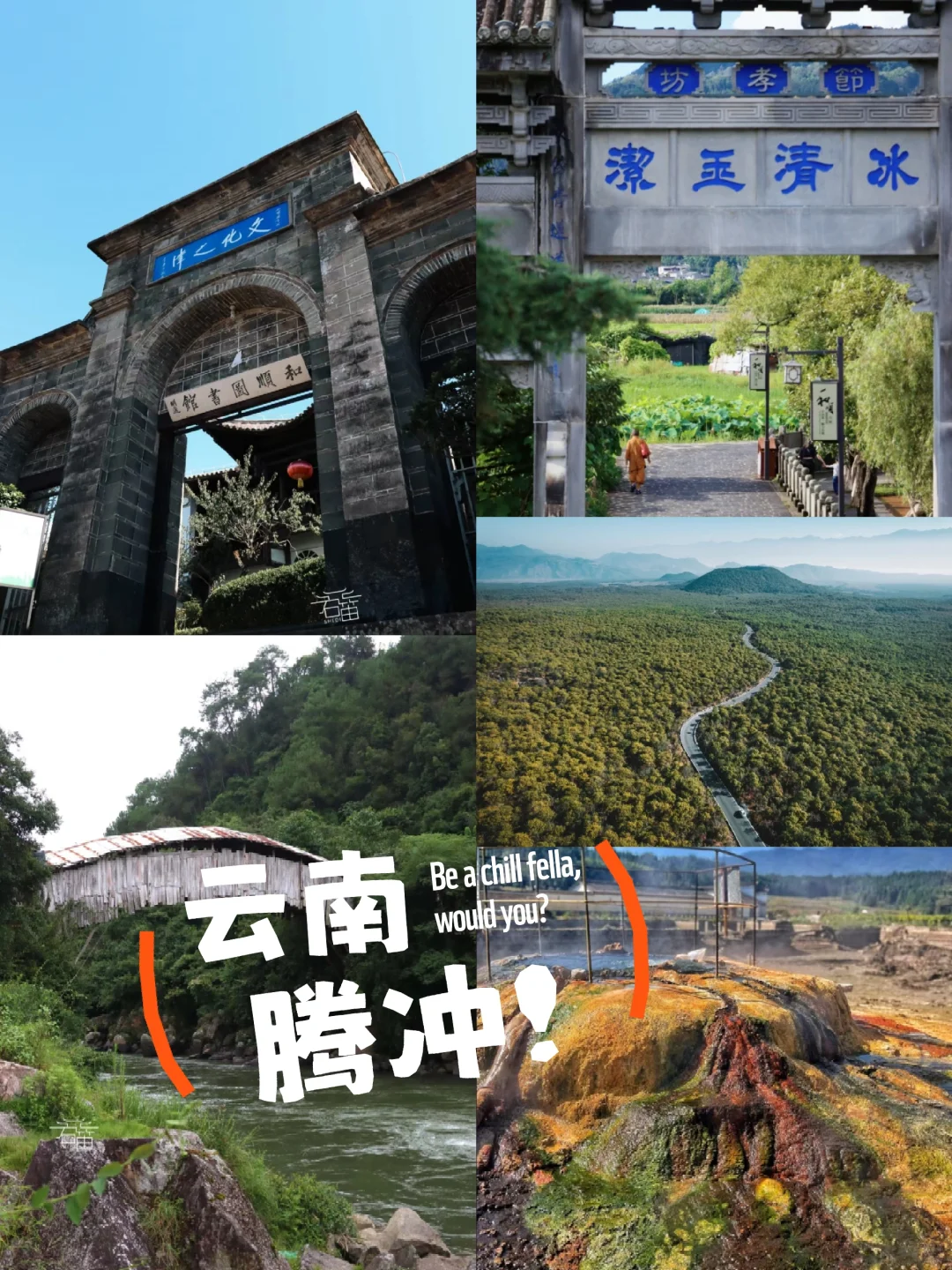 腾冲,一处坐标于气候舒适的西南城市,冬无严寒,夏无酷暑,秋季晴雨相兼,全年均温19℃,气候舒爽宜人,这里也被评为了“最适宜人类居住的地方之一”,在这里,你可以完全爱上秋天。 腾冲得天独厚的气候条件,成就这里秀丽迷人的景色。是中国极负盛名的温泉朝圣地。这个季节的腾冲,蒸汽氤氲笼罩的泡池里,也似一块块形状不一的明镜,成为这秋日里不可多得的“绝色”。