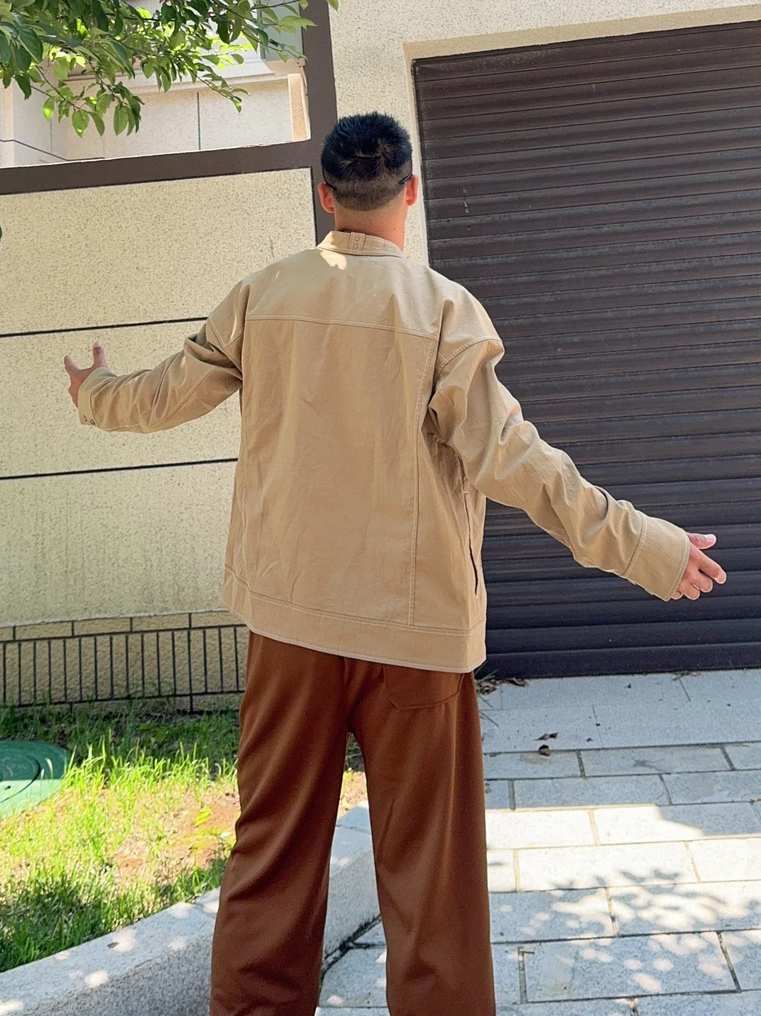 身高体重185/76穿的XL码,大小刚刚好 秋天就是要穿的舒适慵懒,褶皱感的短外套 穿着舒适的同时又显层次版型 褶皱面料真的自带高级感