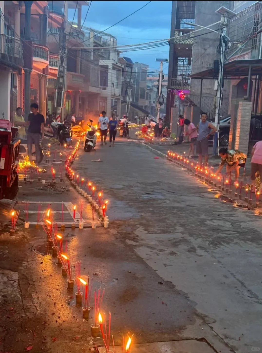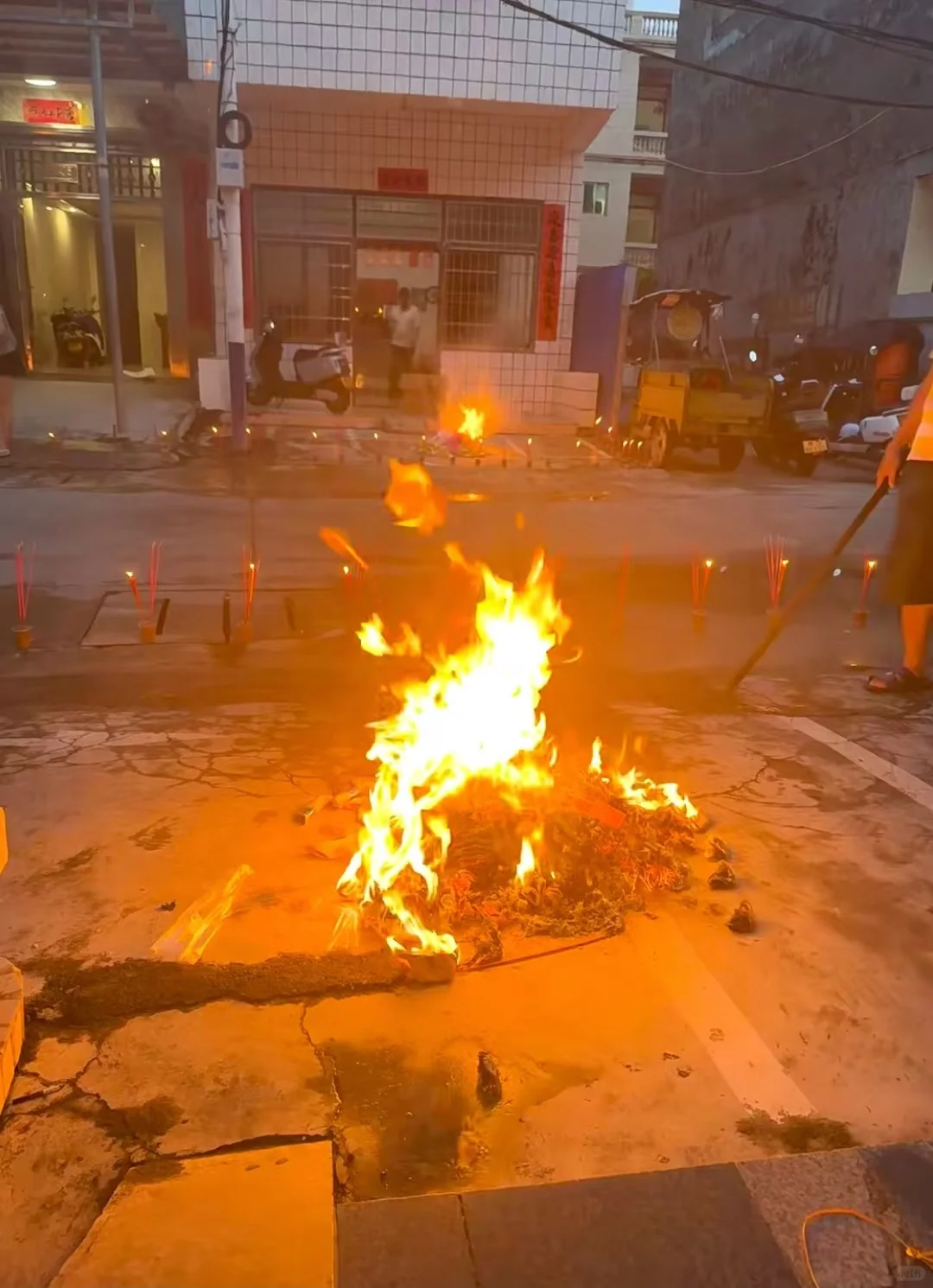 然而我们成都西面县份的中元节正期是七月十二,这一天都要回家烧福纸祭祖,不上坟,分屋里菜祭,堂前烧纸(类似图中那样的),野外赏孤,三个部分