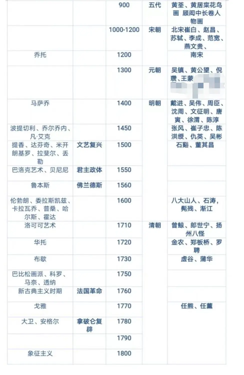 同时期的中西方美术史大事!!