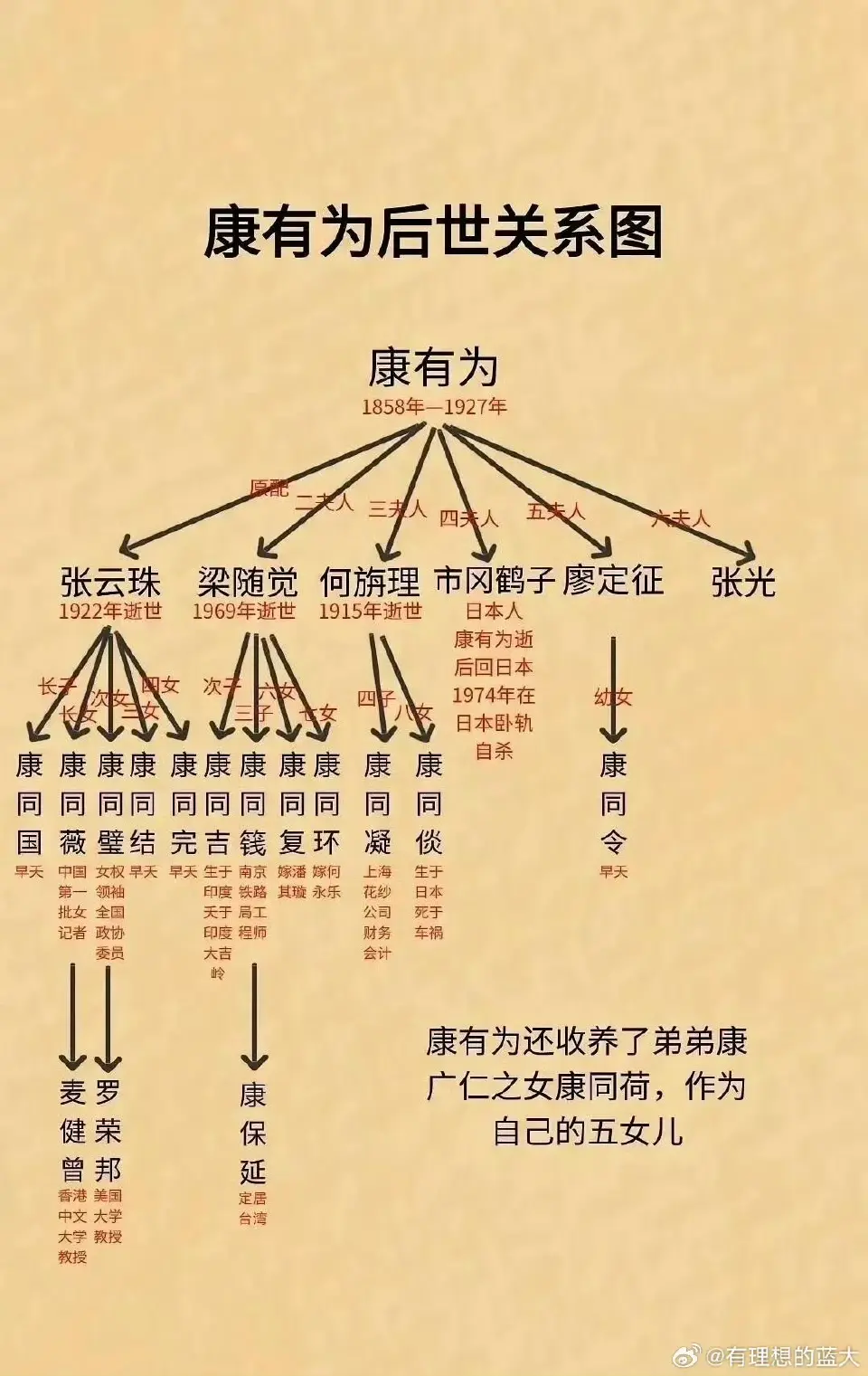 对比之下发现:梁启超的后人多半留在国内做贡献,而康有为的后人多半都在海外。