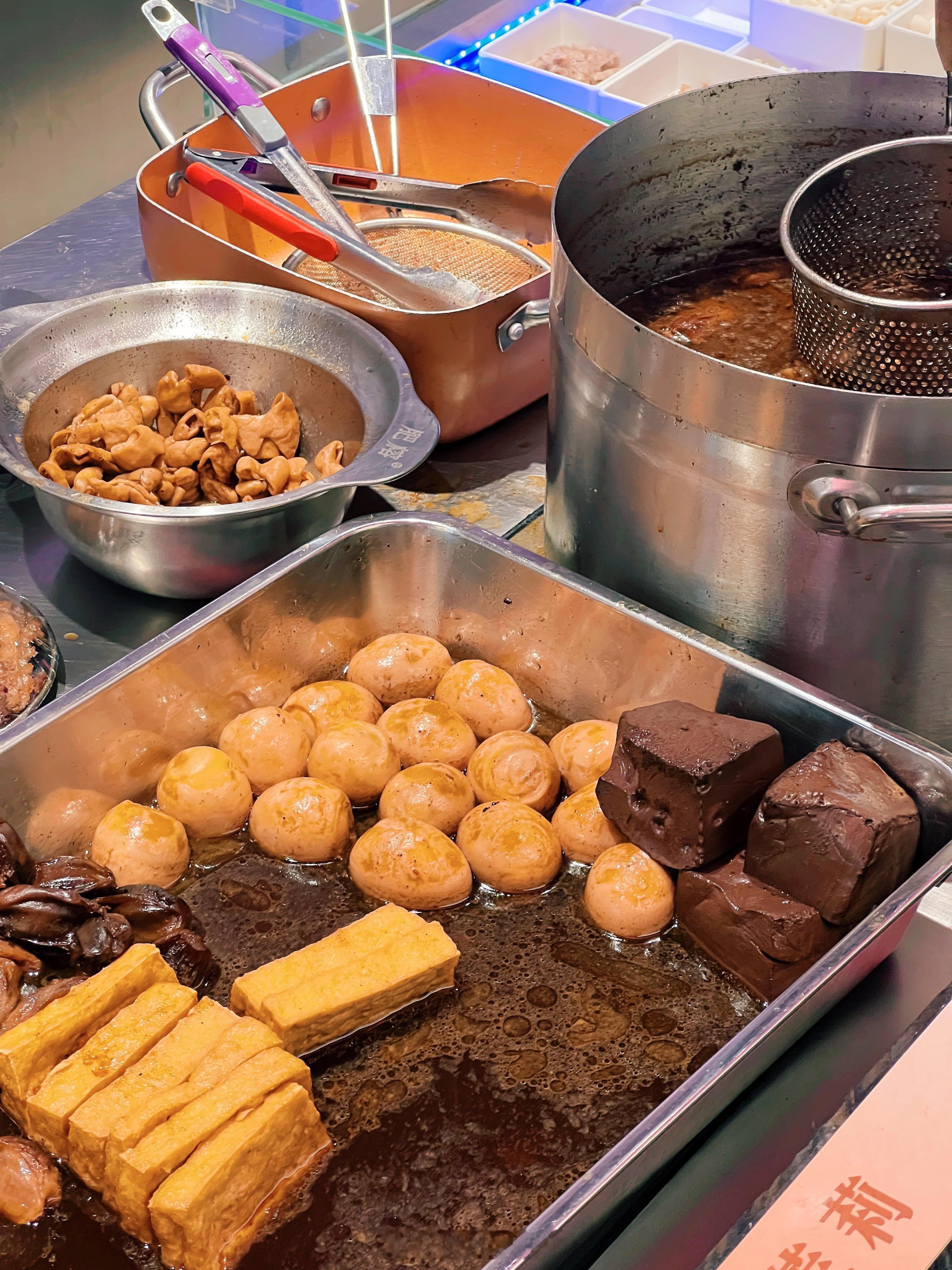 推荐的【肥榕】就属于新派捞化,在东街口和三坊七巷各有一家门店,看起来窗明几净,环境比福州那些知名老店好上不少。新派捞化食材陈列方式类似麻辣烫,根据荤素直接可以看到每盘价格,而非传统老店那样冰柜盲选;捞化的灵魂是汤头,骨汤是熬制的还是靠味精鸡精提鲜,就看你吃完会不会口渴,如果你不喜欢吃兴化粉,甚至可以选方便面,这也是传统老店不具备的。