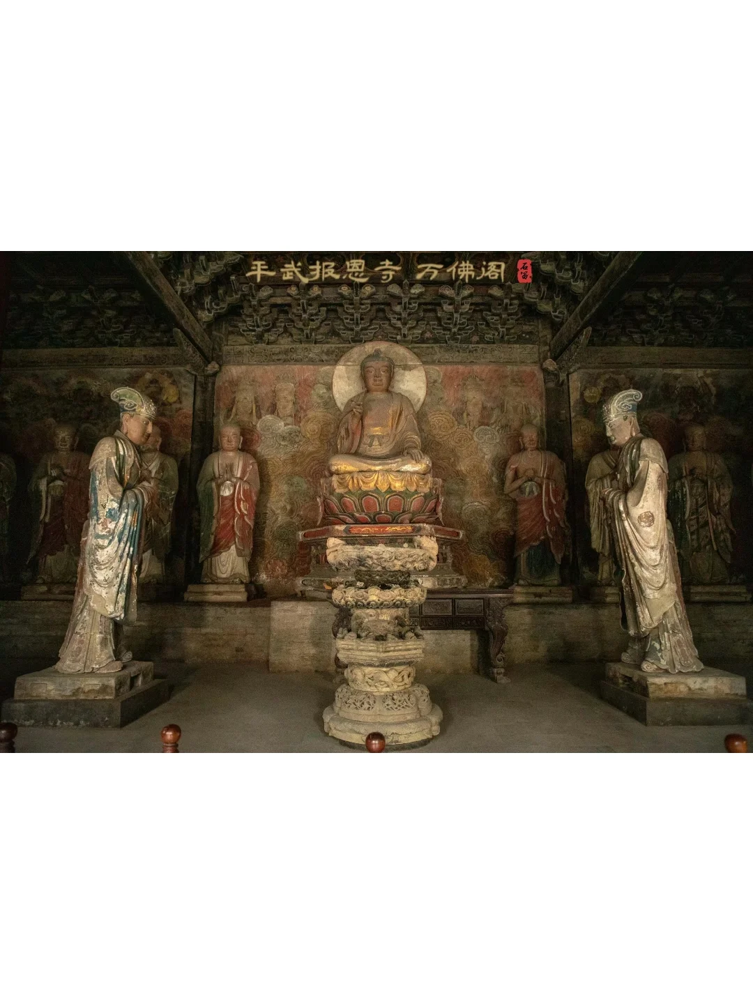 报恩寺保存完好的泥塑和壁画都来自500年前的明朝,体量宏达,泥塑栩栩如生,壁画笔触细腻,报恩寺壁画目前仍然保存了450平米。