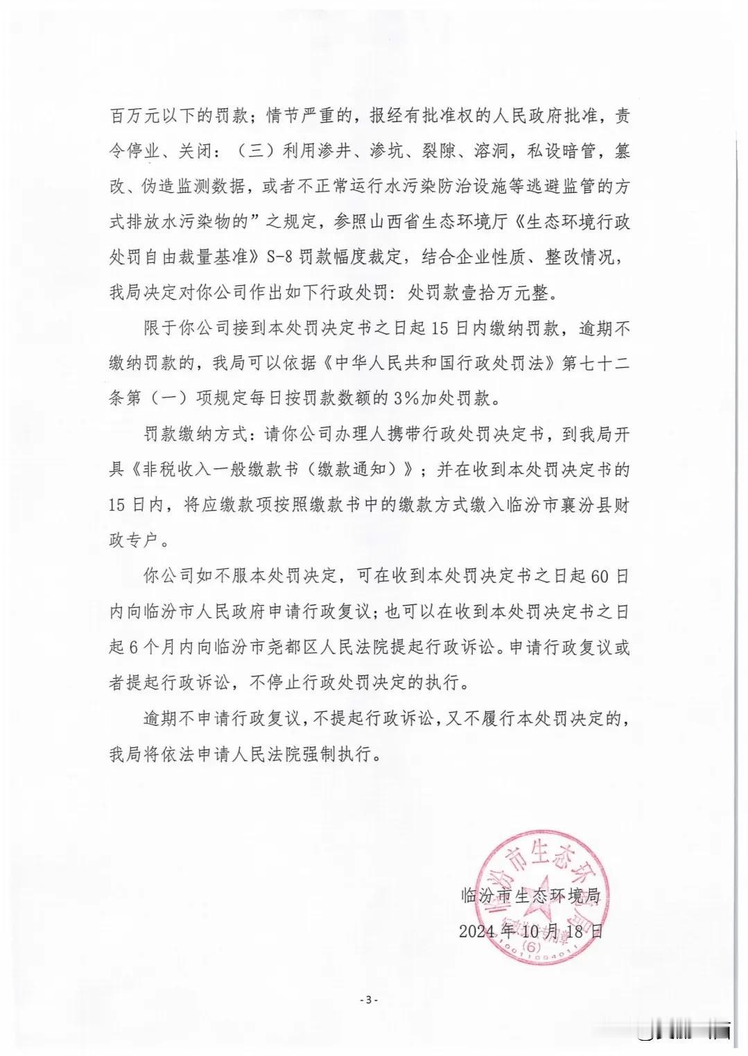 山西襄*生物科技有限公司因违法排污被罚10万元!