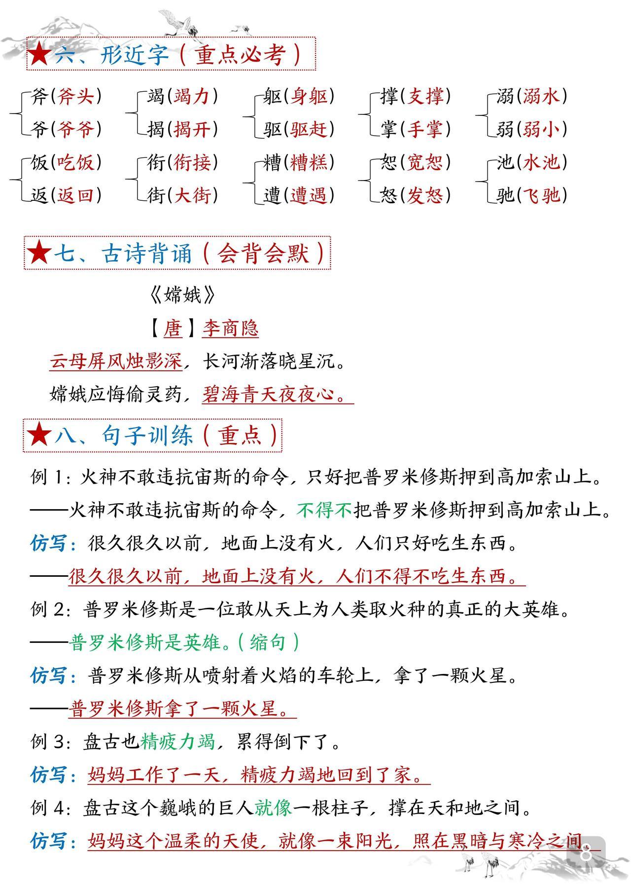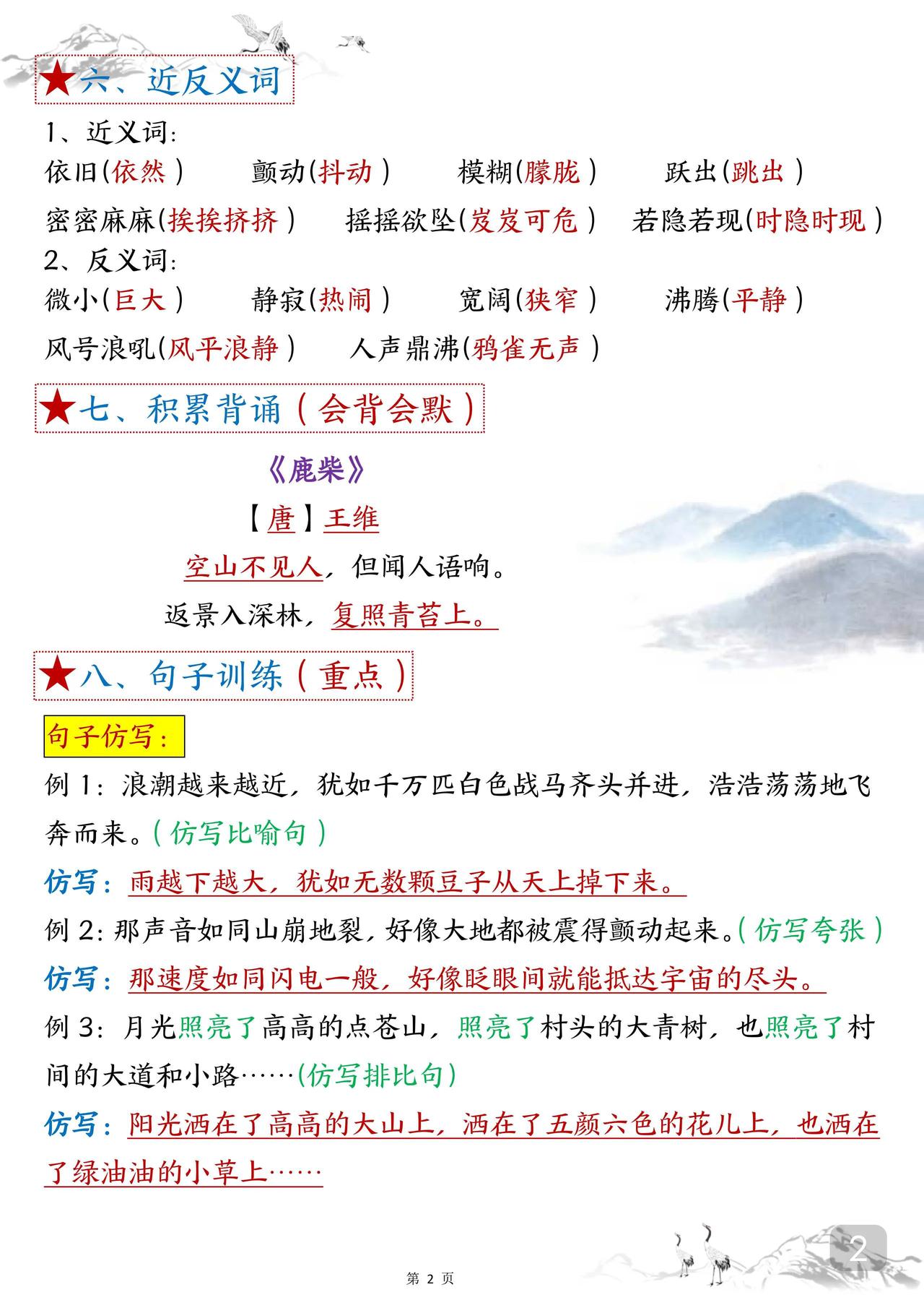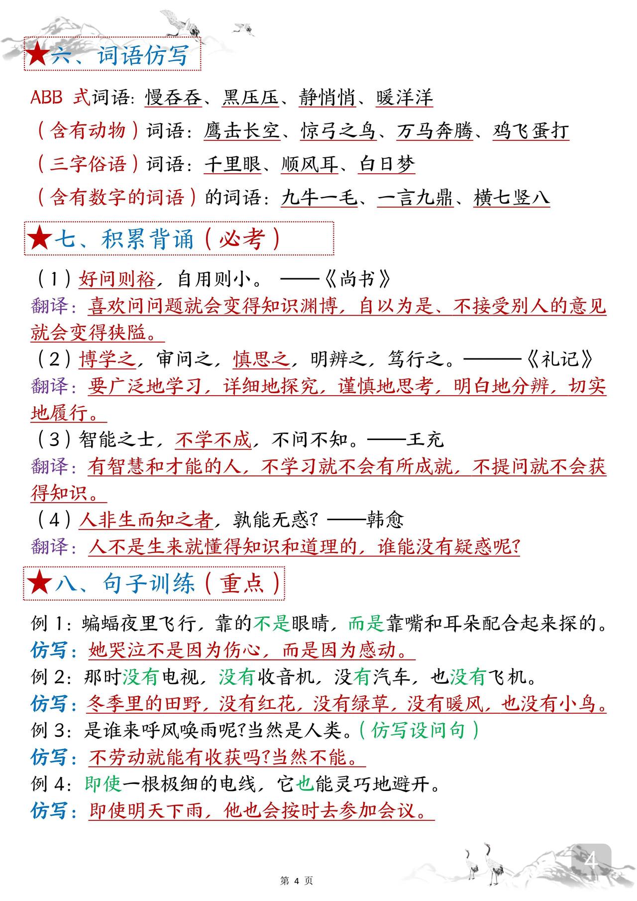 四年级上册语文1-4单元考点总结,有需要的点赞收藏