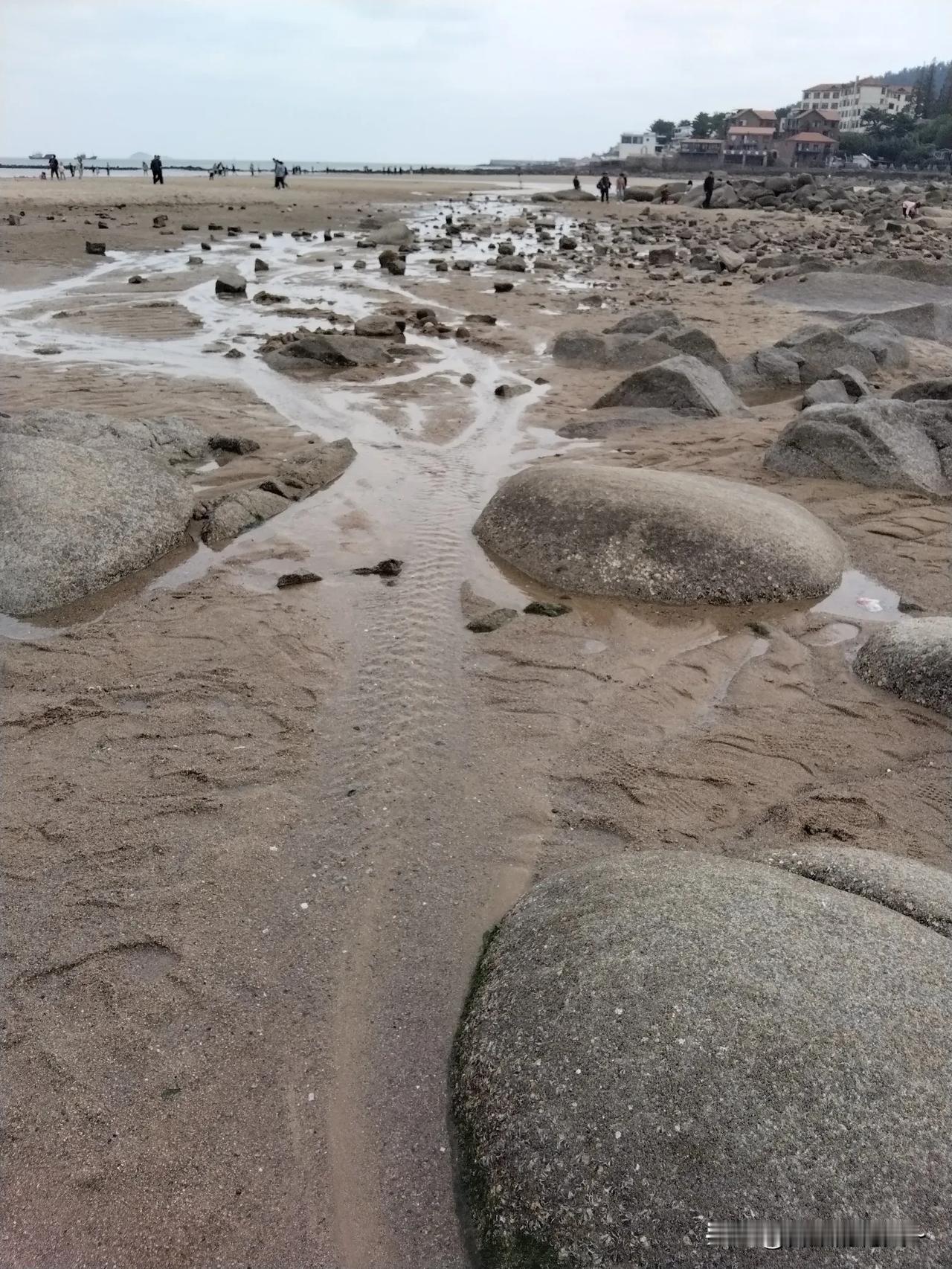 有光滑如镜子的平面沙滩,也有潮落倒流的小溪流沙,还有粗糙不平沙石坡 ,你见过这