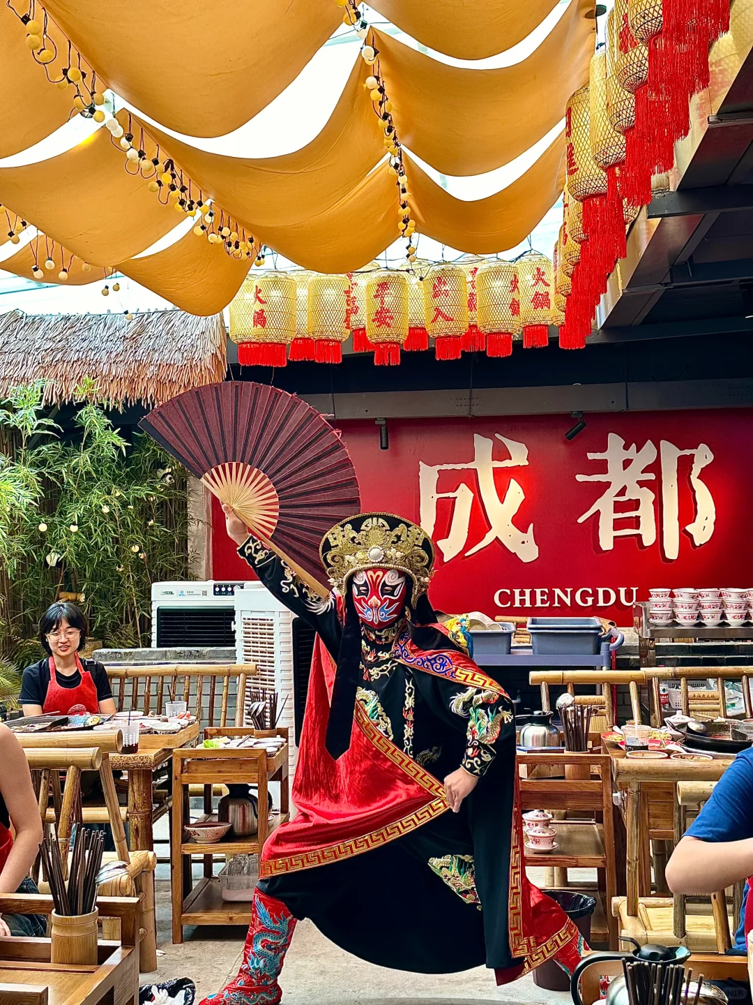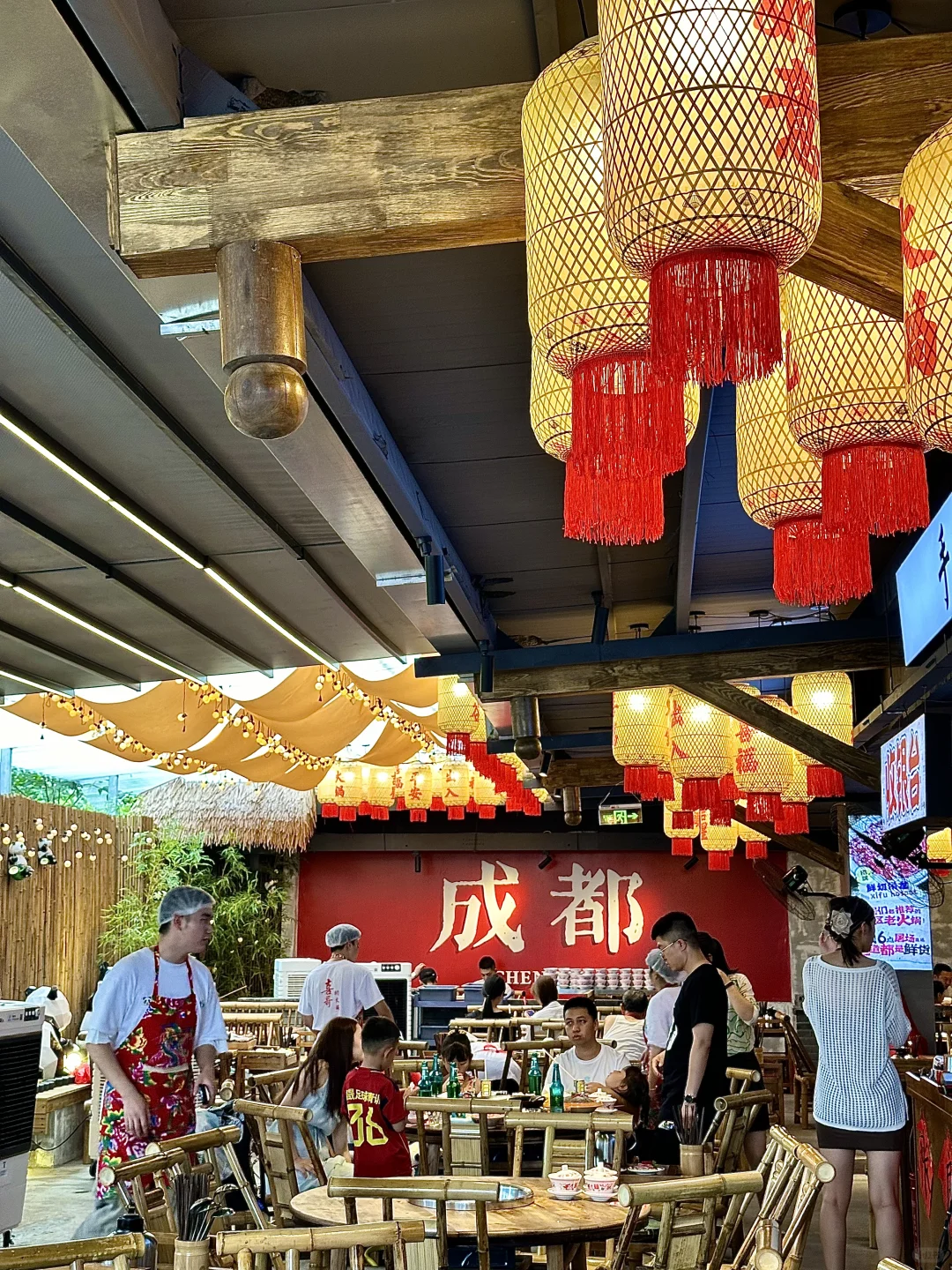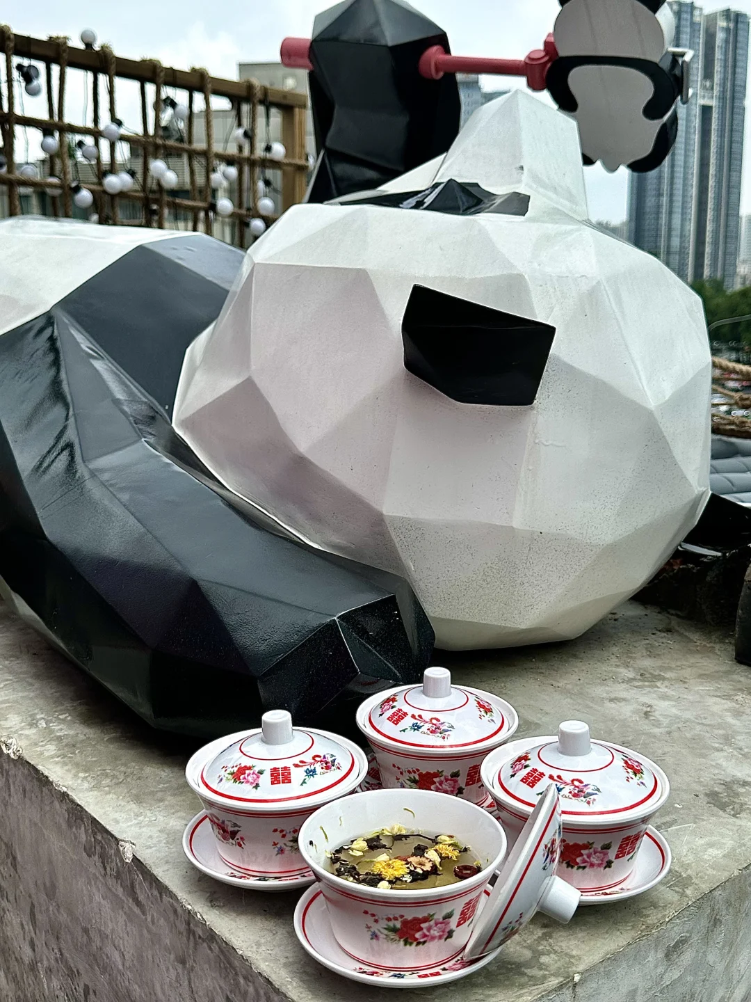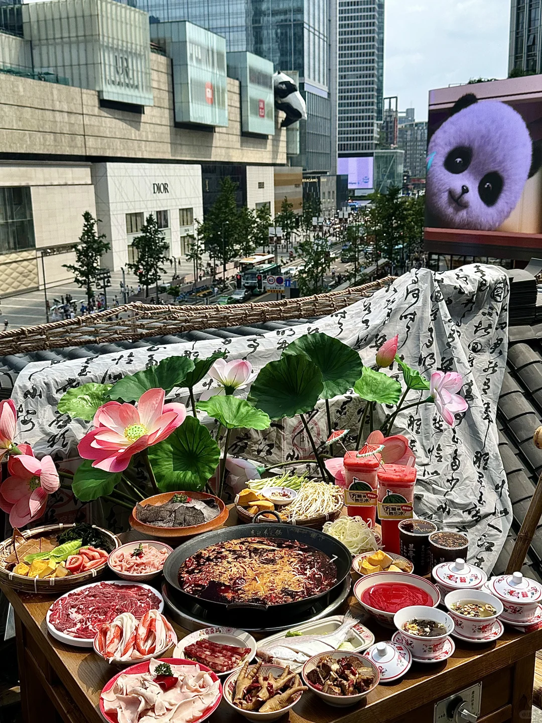 屋顶吃火锅看春熙路大熊猫,很cozy啊!