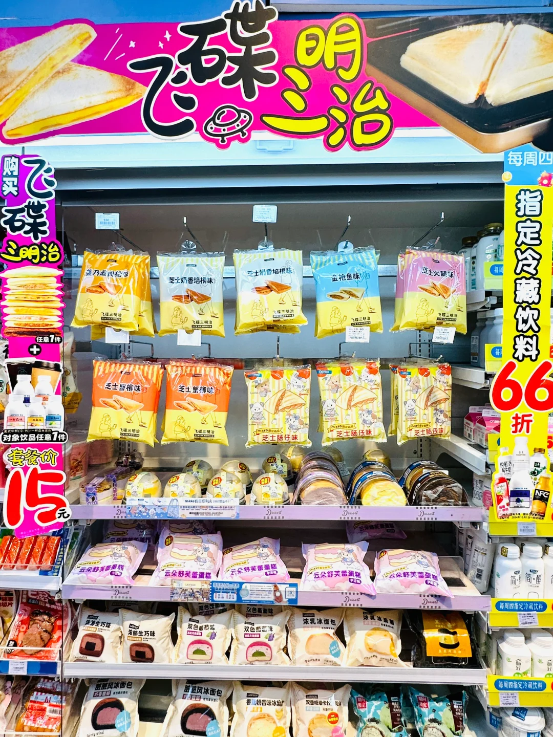 罗森有mikko主题店啦 和mikko的梦幻联动捣蛋便利店等你光临~ 粉蓝色的明亮配色拍照也太好看咯 不止罗森店铺换新装,连产品也有可爱联名哦 ☁️云朵舒芙蕾蛋糕(芋泥味) 喜欢香香软软的蛋糕口感就一定不要错过这个 搭配细腻的芋泥和香甜的奶油 真的有云朵的轻盈感 🥪飞碟三明治(芝士肠仔味) 配料丰富的肠仔芝士包,加热后浓郁的芝士🧀香真的很爱❤️ 🍞南瓜萌萌包 可爱的南瓜造型内里是丰富的南瓜馅 外酥里嫩香甜可口,当早点很适合哦~ 当然不止深圳有mikko主题店啦 广州、厦门一样可以打卡主题店