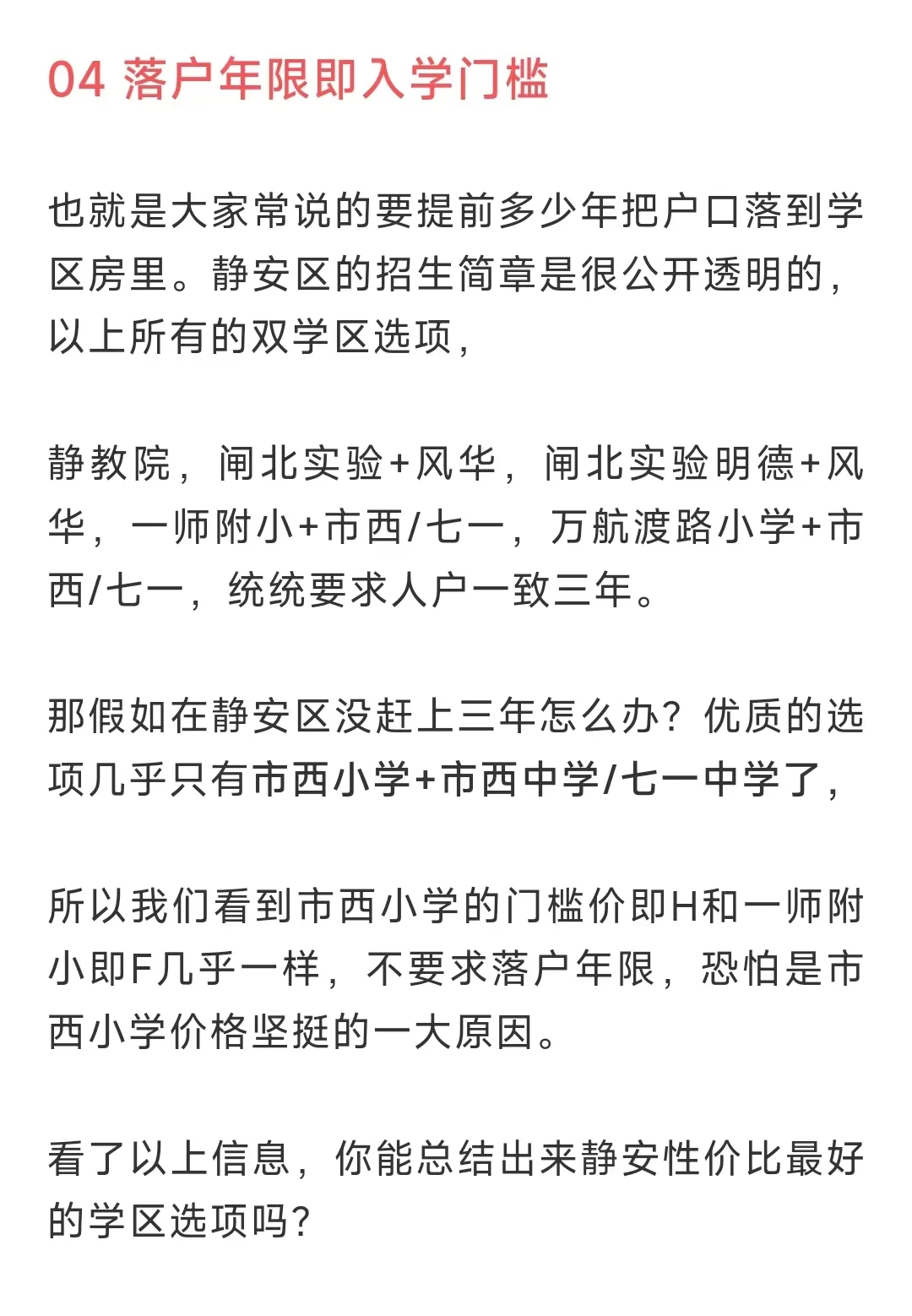 栗美 4 2024-10-23 12:30 终于有人说清楚了啊啊。。。看上去都得提前三年,最便宜的是闸北实验明德,万航渡路小学,只要1字头。 想要好学校要求高的就去静教院,但是真贵啊! 不满三年的市西小学几乎是最好选择了