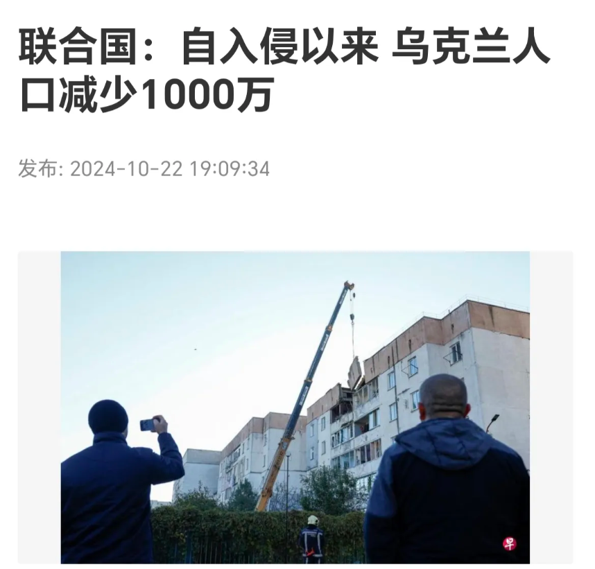 联合国宣布重磅消息! 联合国表示,自2022年2月俄乌战争以来,乌克兰的人口减少了1000万。 事实上,这些人里边,跑的跑了,死的死了。 所以说,乌克兰损失其实是非常严重的。 如果再这样打下去,乌克兰真的会打到只剩下最后一个人吗? 但是这一切对泽连斯基来说,恐怕并不是什么问题,给乌克兰留下一个烂摊子,以后他大可一拍屁股跑了。 毕竟来说,他在海外已经置办好了别墅,已经有大量存款,其它的对他来说根本无所谓。