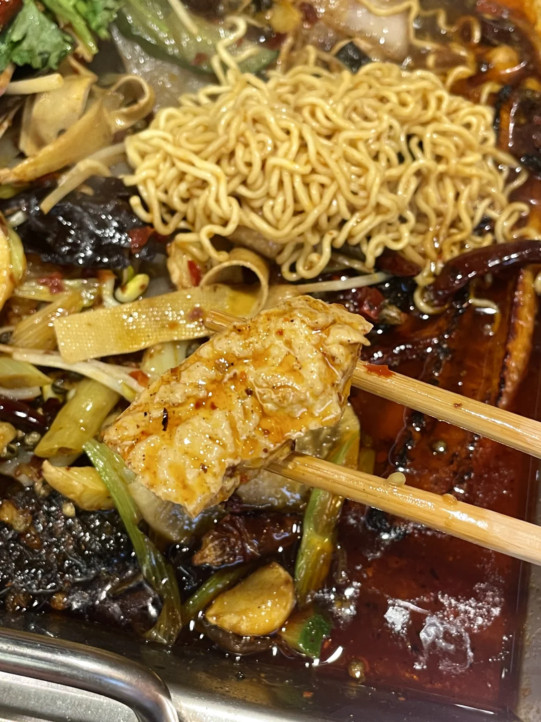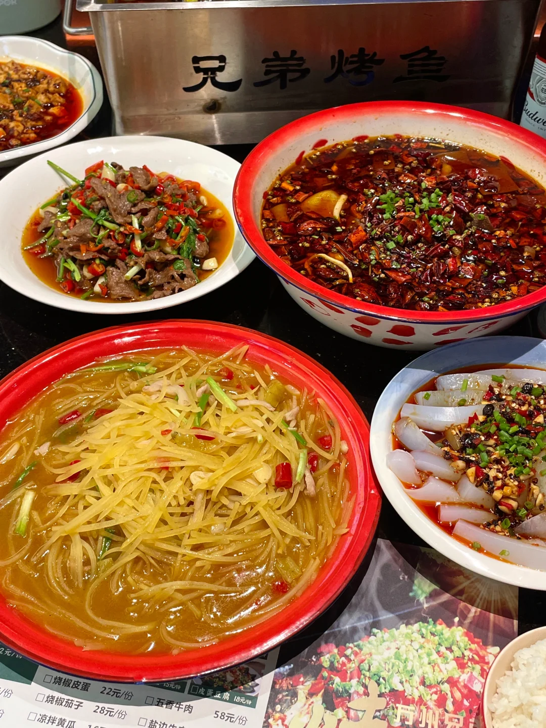 萧山新开的!!嘎嘎好吃! 店里的烤鱼都是现杀现烤的!麻辣鲜香! 香香辣辣的吃起来巨过瘾呢!! 再加上一包泡面🍜真的太好吃了!! 我们还点了小炒!都是现炒的! 毛血旺、小炒黄牛肉…都很下饭!! 店里的烤串都是现串的,很新鲜!很入味!