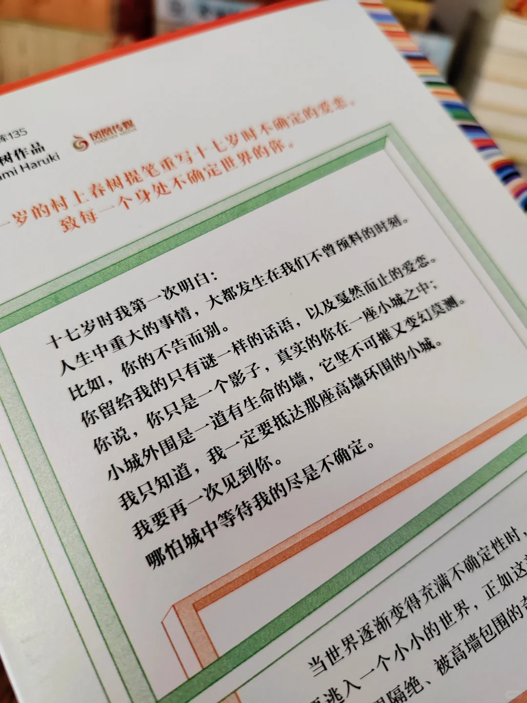 这就是这本书蕞惊喜的地方:两个故事齐头并进,一个是现实中的爱恋,一个是虚幻小城里他和她的故事…
