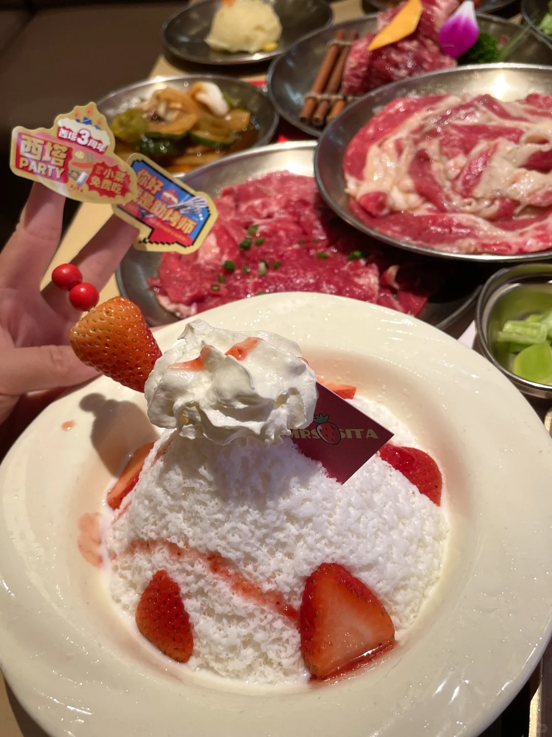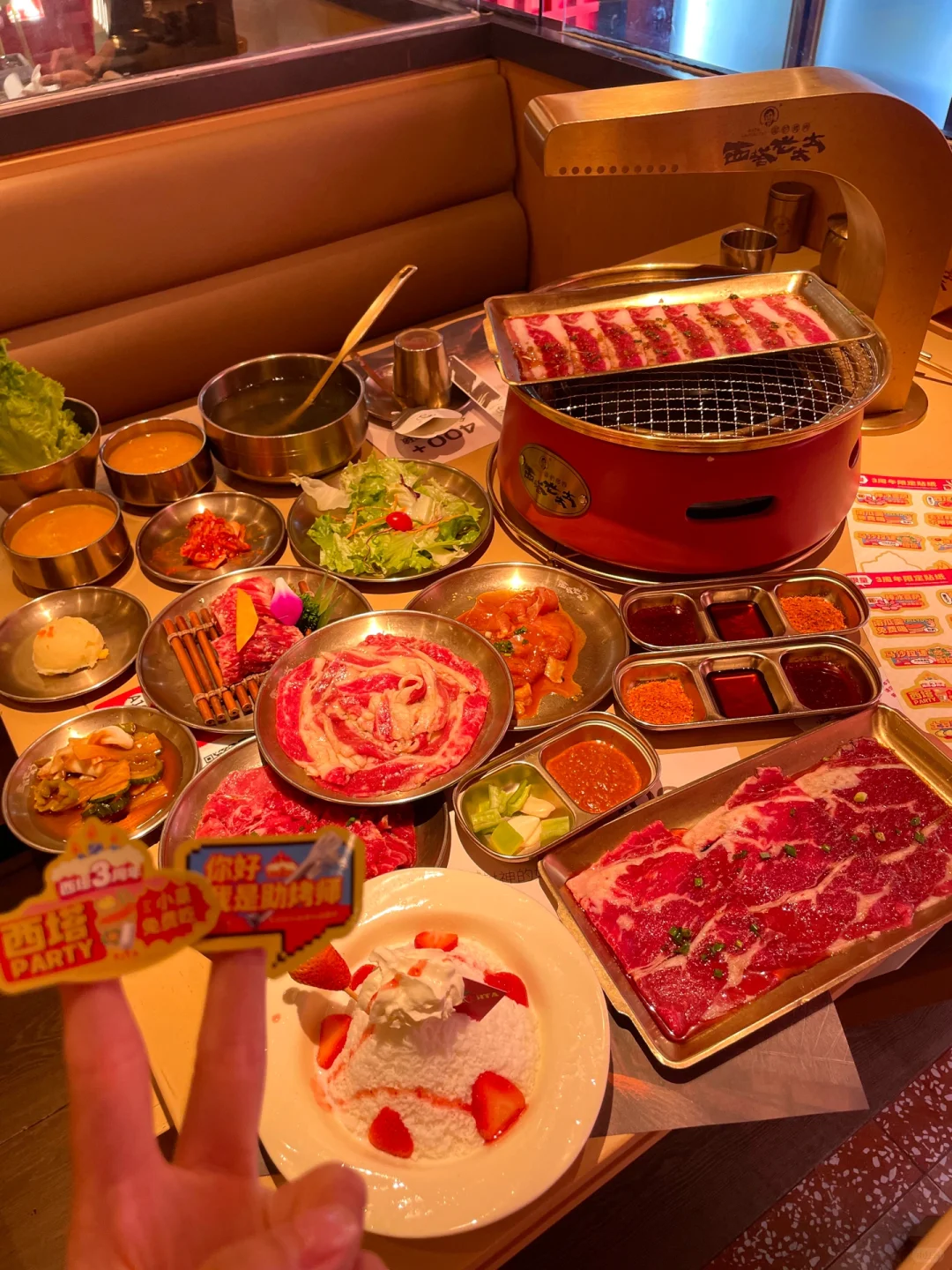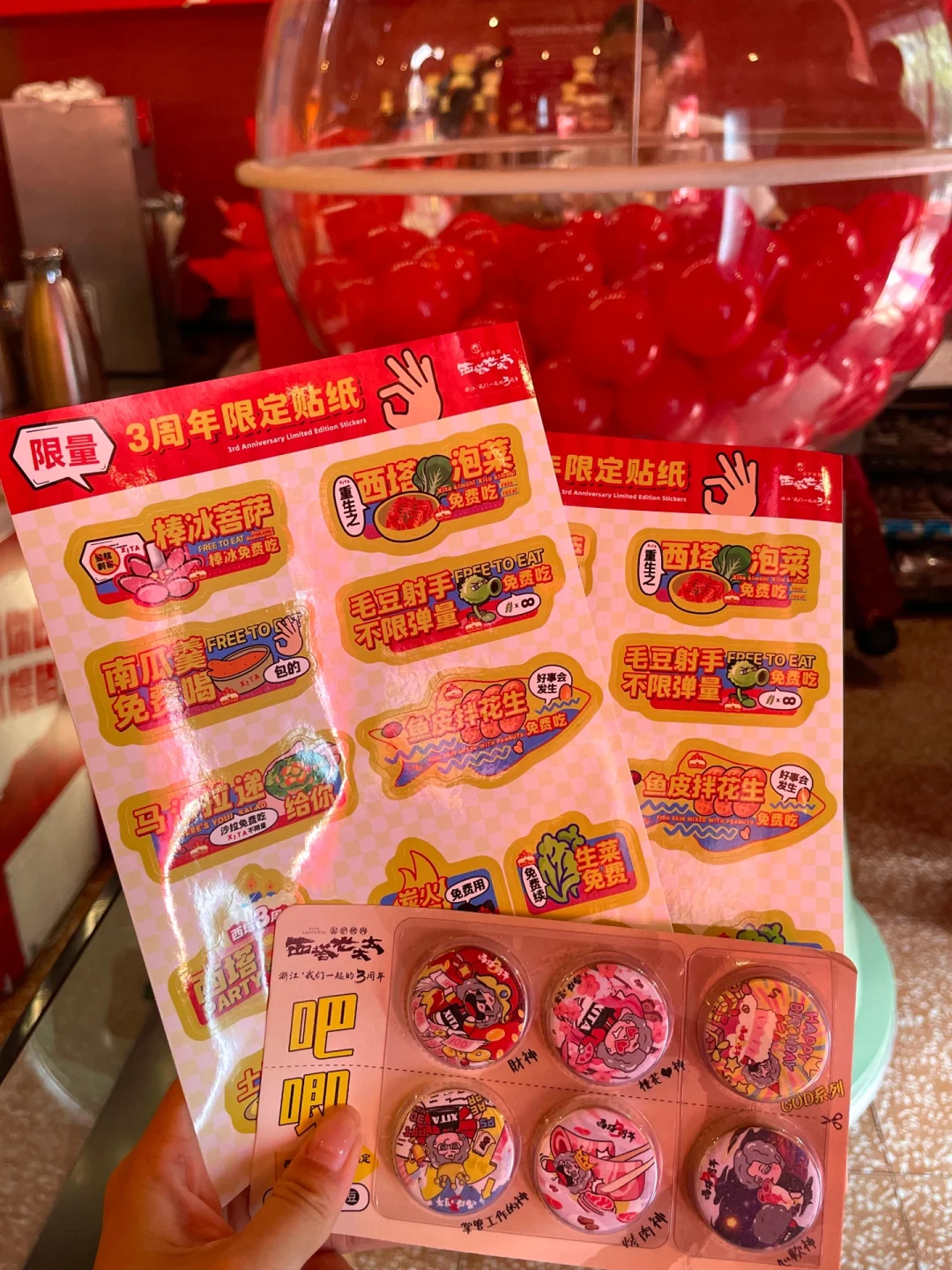 我这运气也没谁了,赶上周年庆活动🎉 烤肉裹上招牌麻酱真的香迷糊了~ 草莓冰🍓酸酸甜甜的,好解腻啊!! 🆓小餐无限续,现场周末还有黑神话悟空表演🐒 现场随机扭蛋可能抽到冰箱贴、贴纸、迷你吧唧豆等周边产品! 听说还有金条、大疆、GUCCI包包,不知道是哪个幸运儿会拿到!!