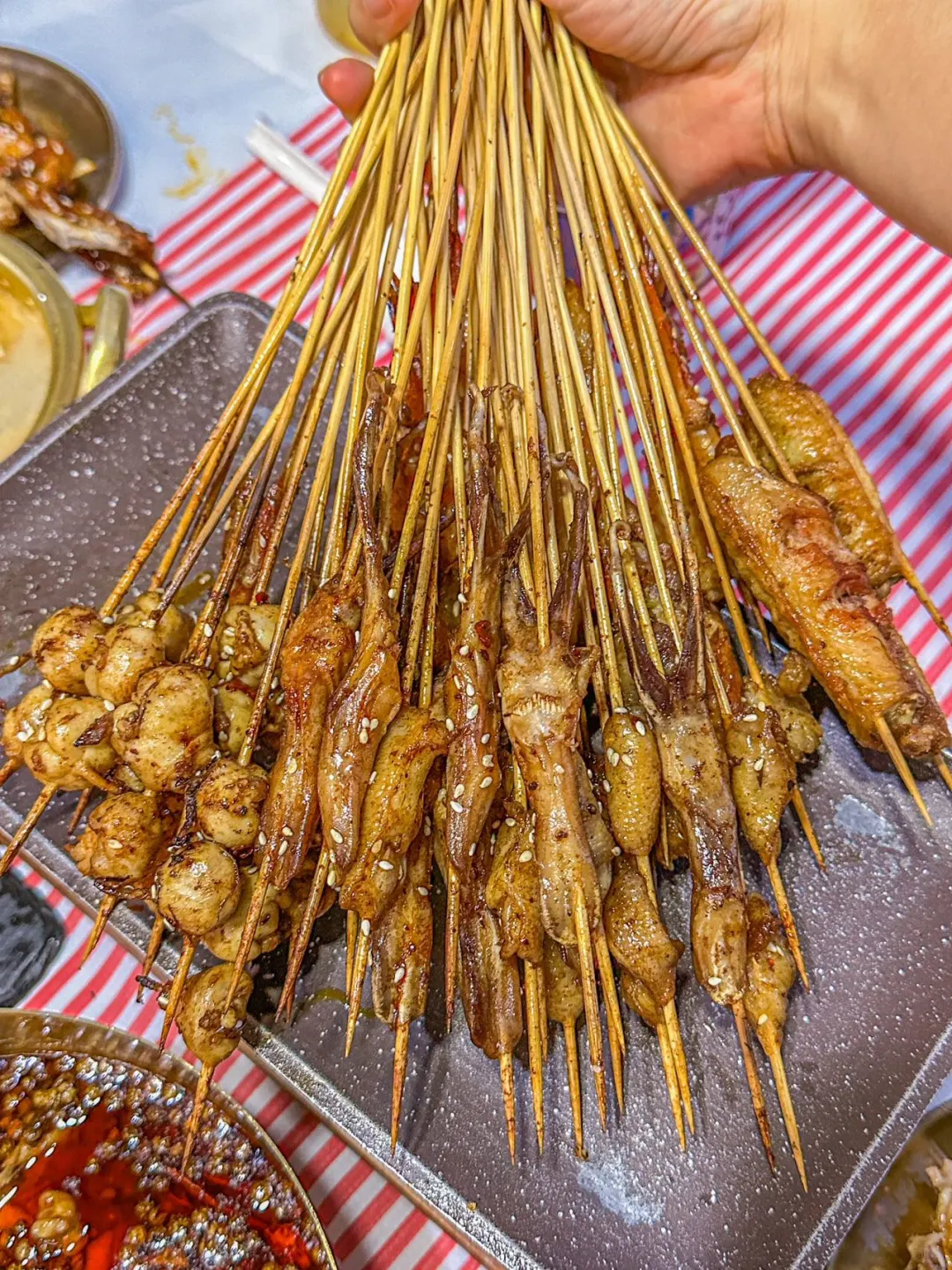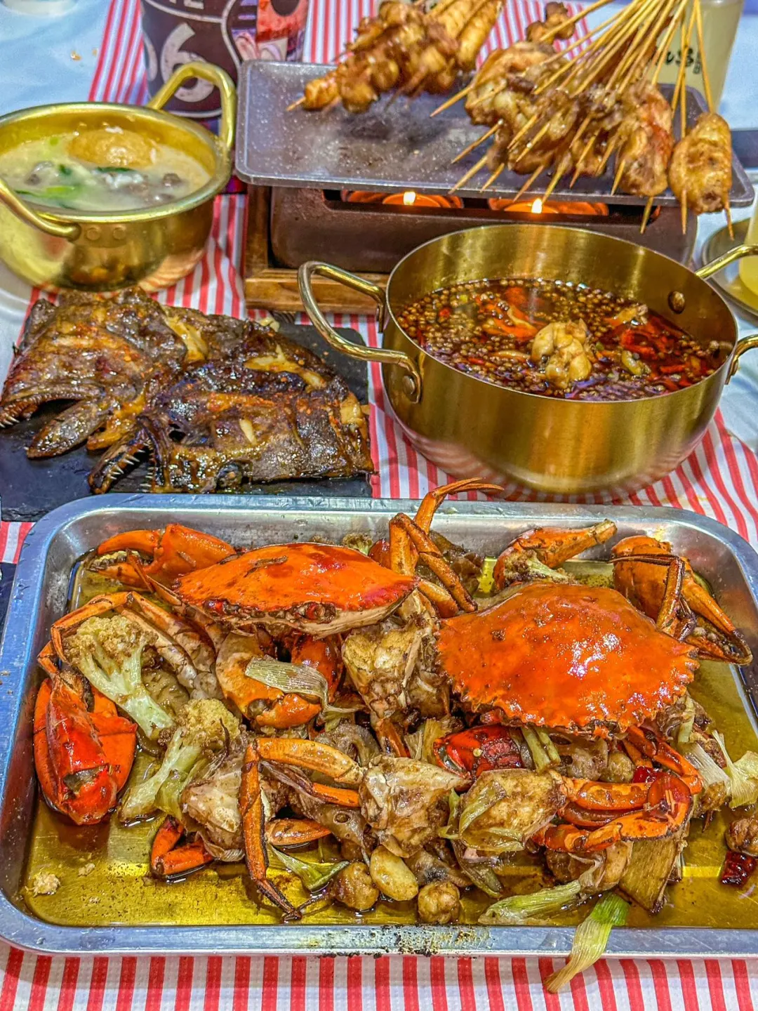 这家云南酱烤真的是我的快乐老家! 隔段时间就要来解解馋🤪 夏天三五好友一起来撸串好幸福🥰 ✔️酱烤鸦片鱼头 她们家的招牌!好好吃啊!! 鱼肉嫩嫩的,酱香入味🍴 ✔️秘制鲍鱼 鲍鱼肉质紧实,💕新鲜美味~ 搭配芥末酱料,味道更佳🥰 ✔️嗦肉蟹 吃到了第一口梭子蟹!鲜美无比! 蟹肉鲜甜饱满 🥰甜丝丝的味道~ 他们家的烤串是云南风味的!!都好吃😋男友手剥虾、掌中宝、鸡脚筋、烤鸭舌、魔鱼嘴等 快带着好朋友一起来撸串💪?
