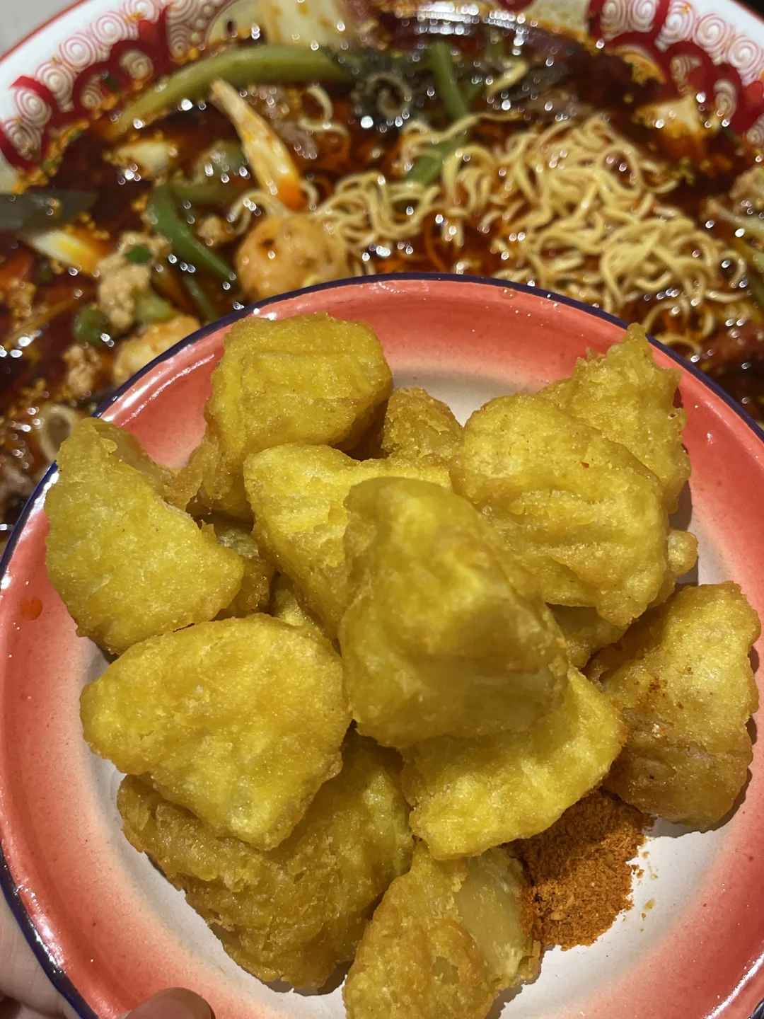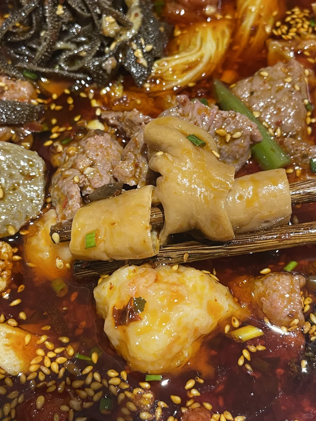 杭州新开的!真的太香了😭 牛肉、毛肚、鸡爪、肥肠都好好吃🤤 便宜又量大!!店里还有🆓绿豆汤!!! 锅巴土豆太香了!泡在冒菜汤底里更好吃!