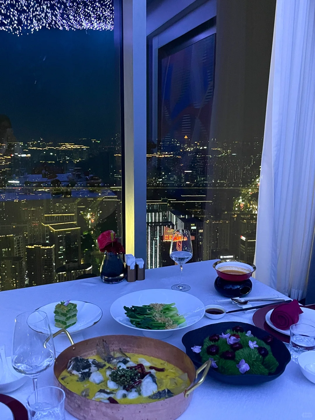 来杭州一定不要错过的氛围感高空餐厅🍴 在57层俯瞰城市夜景🌃真的很难忘啊😭 拍照太美了!约会生日来这里都很合适!