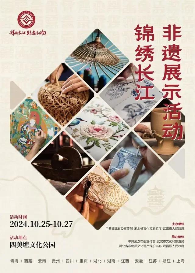10月的武汉,秋色怡人,山山水水层林尽染,绚烂多彩,加之长江文化艺术季正在如火如荼的进行,闲暇之余不妨来武汉走一走看一看,感受一下江城武汉的艺术魅力吧! 10月23日至28日正是“锦绣长江”非遗展示活动期间,长江流域是非物质文化遗产的富集地,拥有国家级非遗代表性项目800多项、省级非遗代表性项目6000多项。 此次非遗展示活动有360多名非遗传承人携210个非遗项目进行展览展示和展演,有蜀锦、苏绣、陶瓷、漆器、剪纸,还有川剧变脸、土家族舞蹈、湖北大鼓、苏州评弹等等,是名副其实的视听盛宴。我们在享受古老艺术魅力的同时,还可以和非遗传承人聊聊天,听听他们的故事,这一定会是你人生中很特别的经历。 非物质文化遗产,就像一颗颗璨灿的明珠,不仅蕴含着勤劳奋进的民族精神,更彰显着中华优秀传统文化中革故鼎新的理念以及万物并育的思想,是我们国人的骄傲。 金秋十月,秋高气爽,一起来武汉吧,看看武汉的秋天,感受一下长江艺术节非遗文化的魅力。 #魅力江城向新出发#