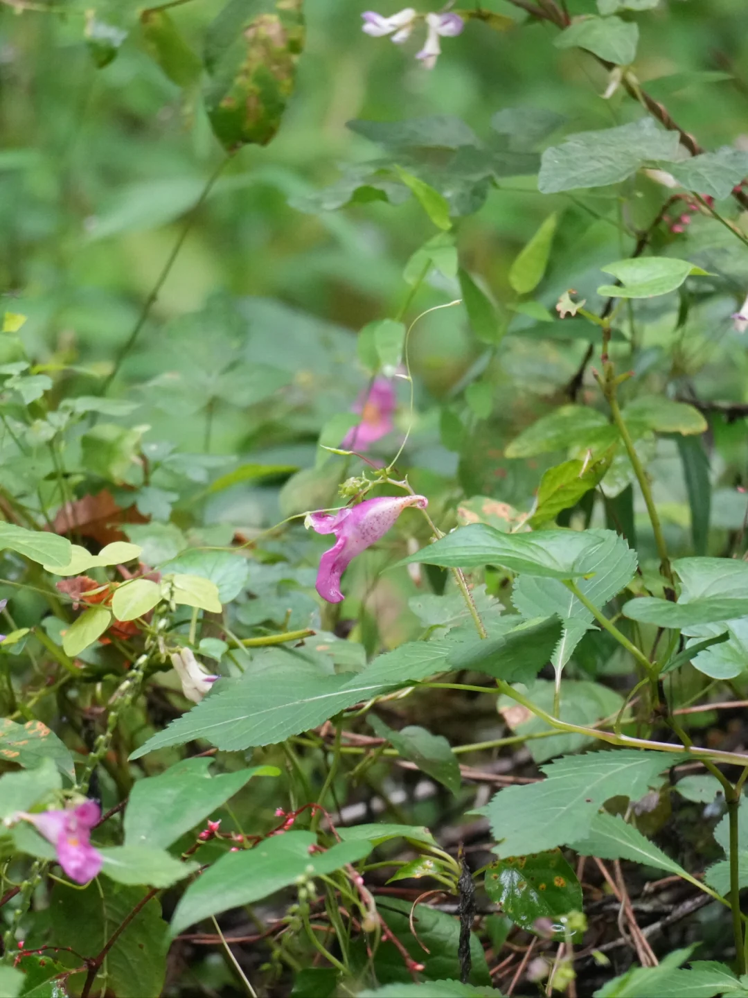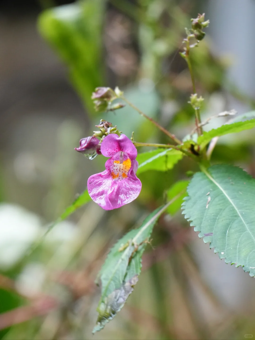 如果不是花期,我们或许会与这小小的野凤仙花擦肩而过。但当它们盛开时,那小巧而艳丽的花朵,就像是山野间的小精灵,吸引着我们的目光。每一朵花都有一个“小尾巴”,那是它们的“距”,专为吸引昆虫传粉而设计。这是自然界的巧妙安排,也是野凤仙花生存的智慧。