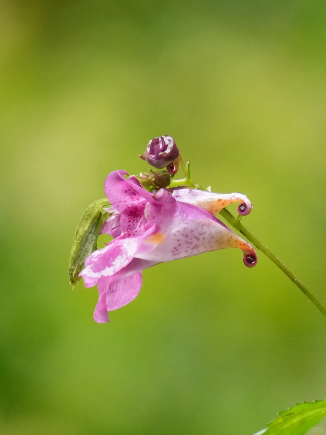 日本,是野凤仙花模式标本的采集地,它的身影遍布奥多摩的山间小径。而在我国,吉林、辽宁、山东的山沟溪流旁,也时常能见到它们自在生长的身影。它们不张扬,不争艳,却以一种低调的姿态,静静地装点着大自然的画卷。而有一种美丽的访客——黑长喙天蛾,它们是野凤仙花的忠实粉丝。这些天蛾在花间飞舞,为野凤仙花的传粉贡献着自己的力量。