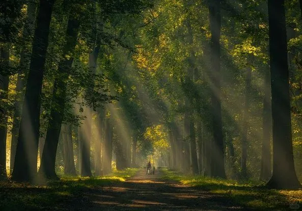 在秋天的清晨,阳光透过森林的树梢,洒下温暖而柔和的光辉,整个世界仿佛被镀上了一层金色的薄纱。清新的空气中弥漫着泥土和枯叶的芬芳,令人心旷神怡。微风轻轻拂过,带来阵阵凉意,唤醒了沉睡的自然。