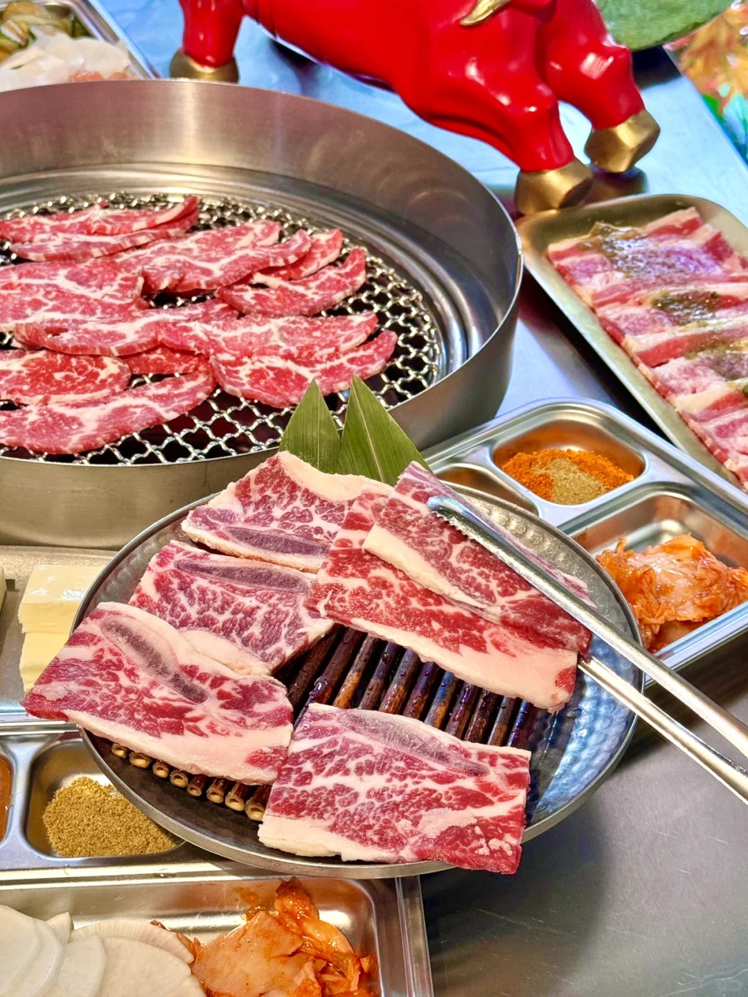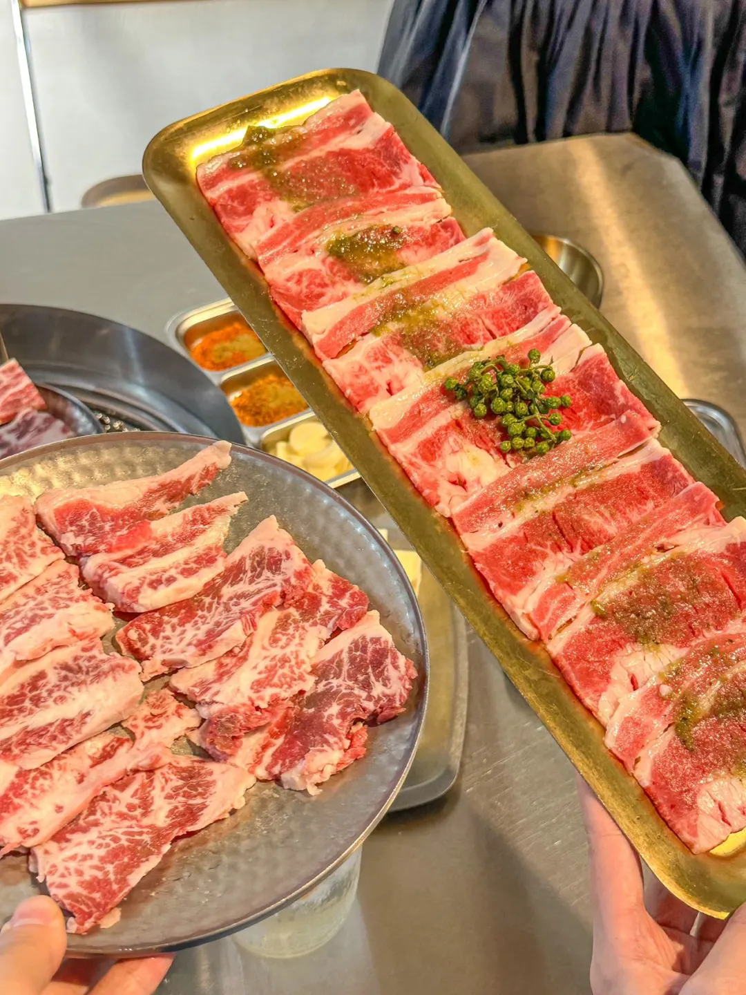 这家烤肉主打一个新鲜度,真材实料让人完全无法抗拒,吃到爽!是我在义乌会一直去的一家烤肉店没错了!而且他家对菜品的品质非常有讲究,选择的都是优质食材,种类丰富让人眼花缭乱,蘸料的种类同样也是非常丰富,满足了大家不同的爱好😋 - ✔️招牌牛肉:每次来都必不可少👍一口气让人吃了不少,一点也不会腻! ✔️奶香芝士条:让我这个芝士脑袋完全无法拒绝❌奶fufu的还能拉丝,特别是蘸了炼乳之后奶味双重出击,谁懂🥹 ✔️山葵雪花牛肉:雪花肉质细腻,柔嫩鲜美,山葵的味道好清新,一口满足😌 - 📍牛二烤肉