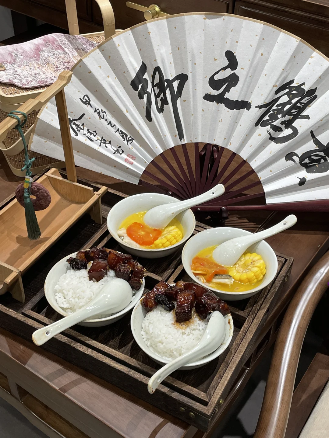🍂东湖总能发现新地方 一家很安静的小庭院🏡 是蛮正宗的非遗湖北菜 - 来一碗桂花红烧肉拌饭 再打一碗鲜美的鮰鱼汤 秋天的第一顿吃的很舒服😌