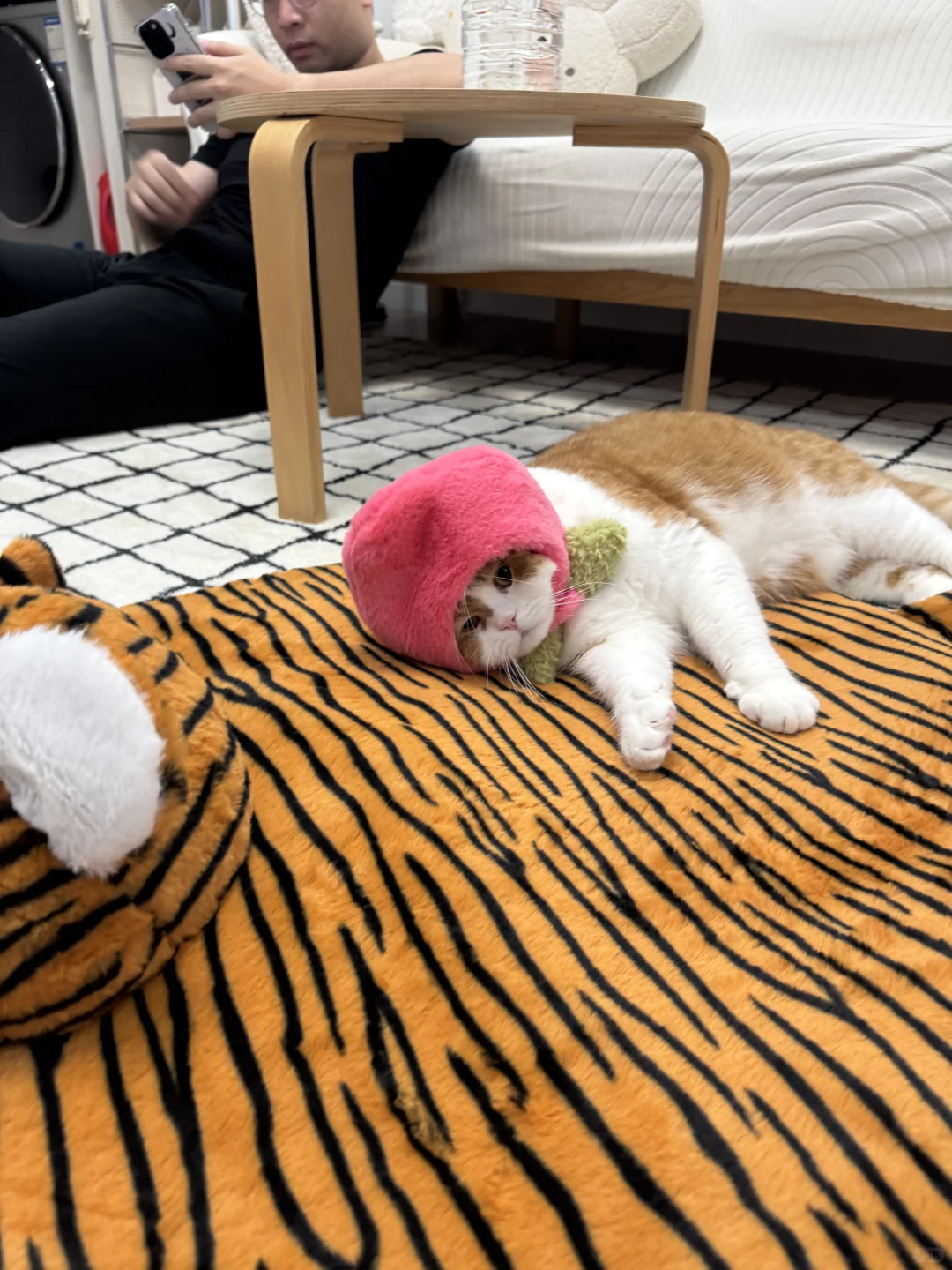 谁说老虎摸不得 我小喵咪不仅摸了 还躺了 我们百年之前是一家 我跟我虎兄好得很 皮毛和我一样舒服[斜眼R][斜眼R]