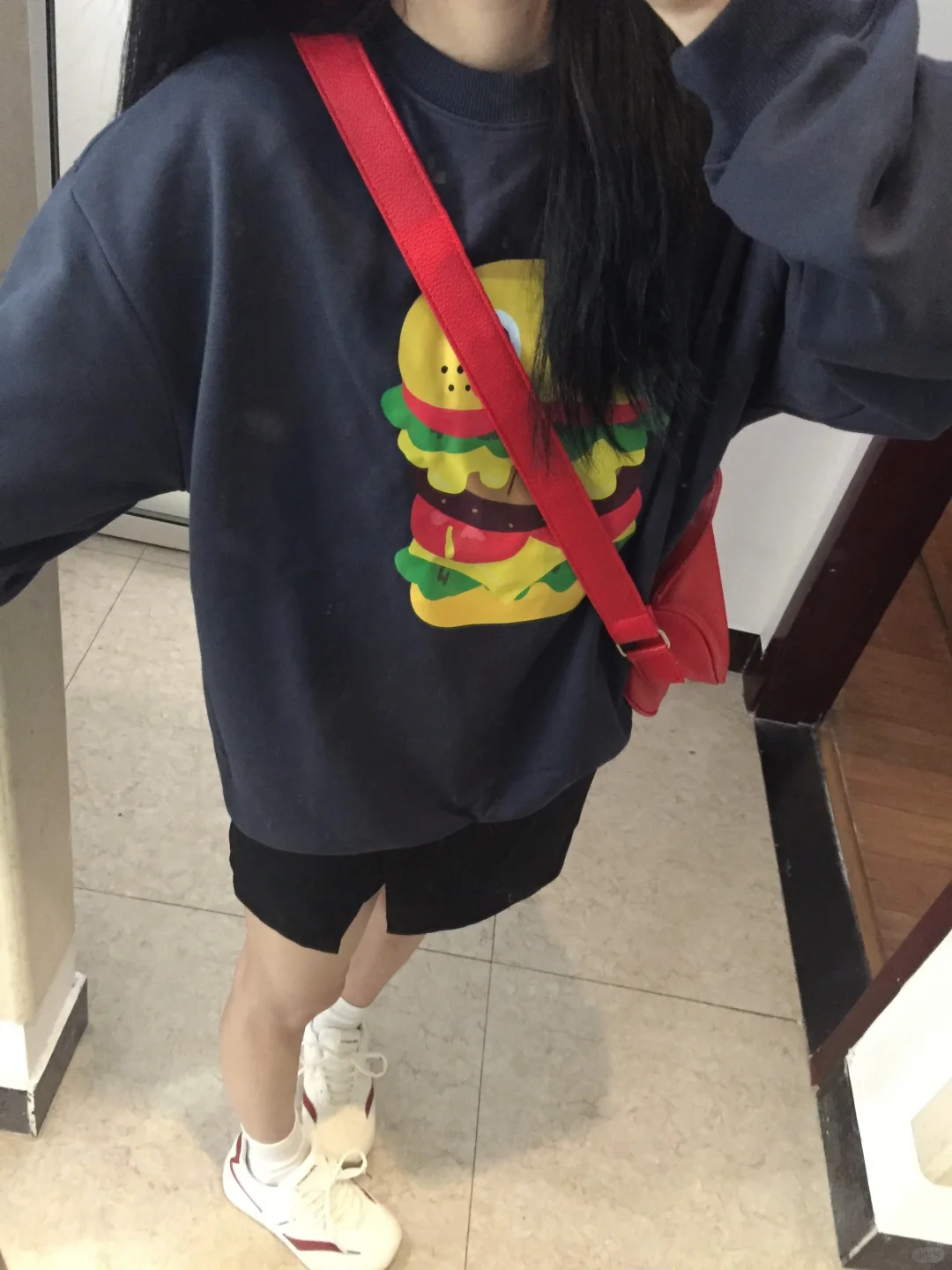 运动后放松时刻,穿红色卫衣,享受宁静时光。