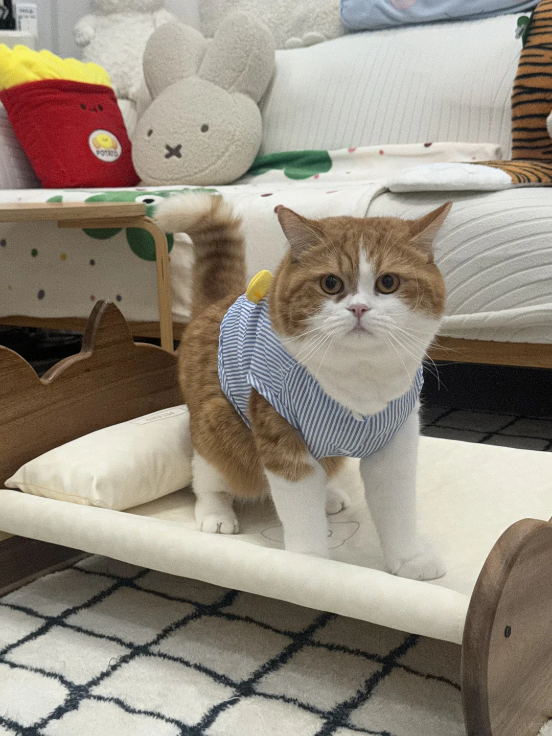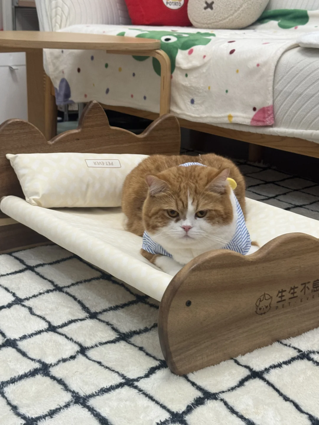 我真的好喜欢好喜欢买各种各样的猫窝和猫床给李红中睡觉😪 他躺在我买的窝窝上,就是我给他买新窝窝的动力 恰逢双11,又要给他买冻干,看了一眼平常经常买的生生不息居然有送小床🛏️的活动!!!!!! 我是不会错过这种宝贵的机会的 给自己买东西畏畏缩缩 给李红中买东西我绝不手软!😅 咔咔就是一顿下单,家里两只猫消耗冻干的数量也是巨大的~ 屯点就不会饿到孩子 床到手了质感非常好,可以承载12斤大肥猫在上面蹦迪 实木质感的小床,摆哪里都好看 ~ 呜呜又是为猫激情下单的一天