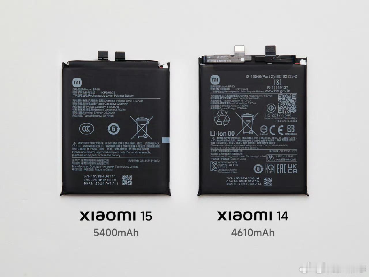 得益于小米金沙江电池这次把能量密度做到了惊人的850Wh/L,之前只能放下4610mAh的14,现在差不多的电池空间,小米15可以放下5400mAh,从而续航提升23%,而小米15 Pro是6100mAh,续航提升38%。