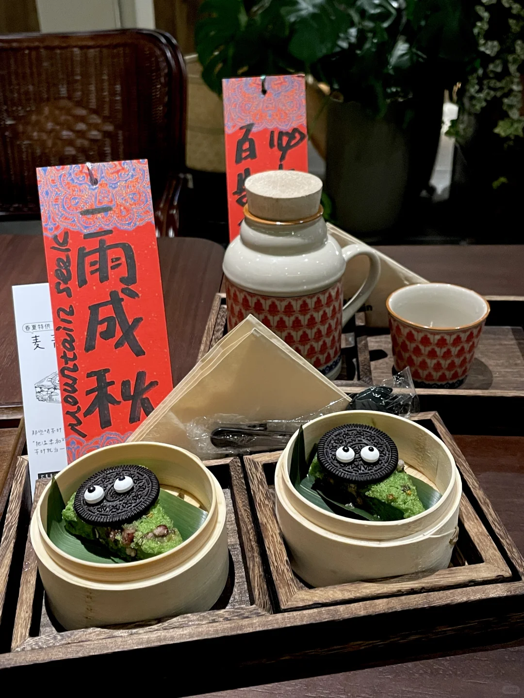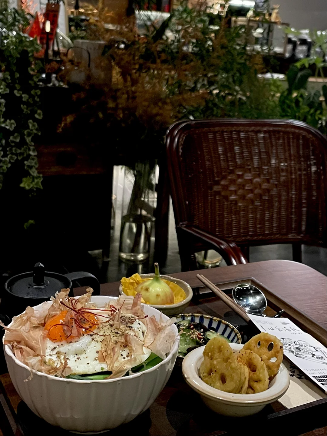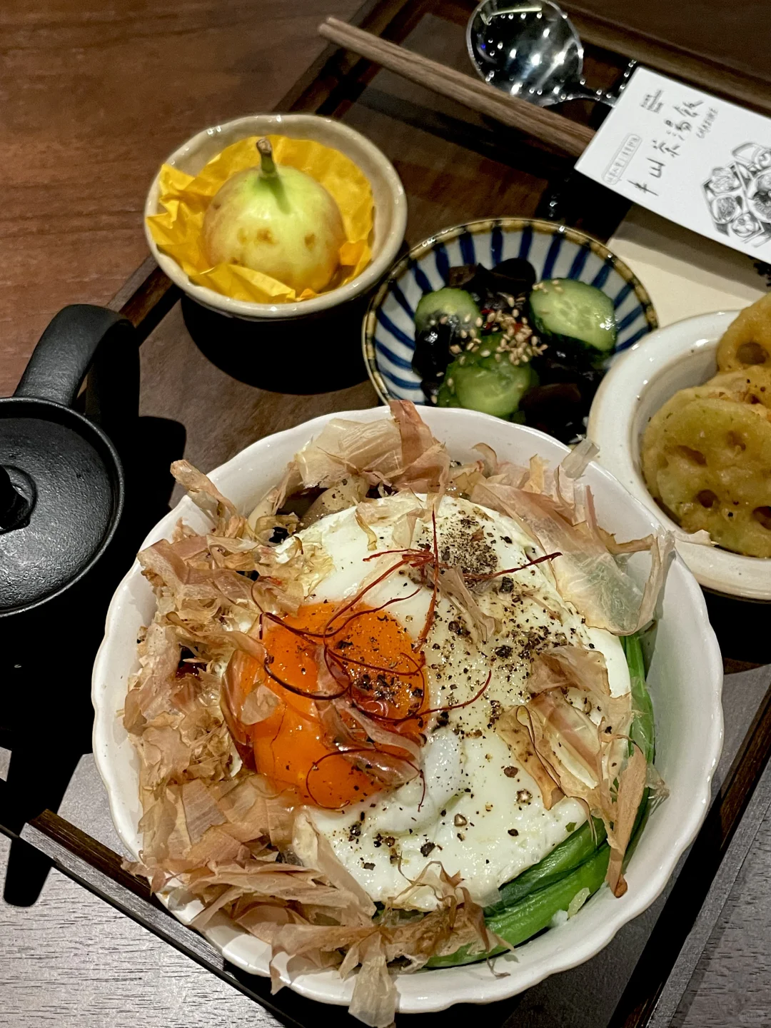 这两天降温冻透了!!必须吃热的!!!! 茶泡饭好吃😋猪排炸和溏心蛋我好爱!但感觉没加茶的时候更好吃哈哈哈(更有味道) 鲜煮奶茶也不错,加了桃胶,奶味大于茶味 ❌配的无花果不甜!蒸青红豆也一般