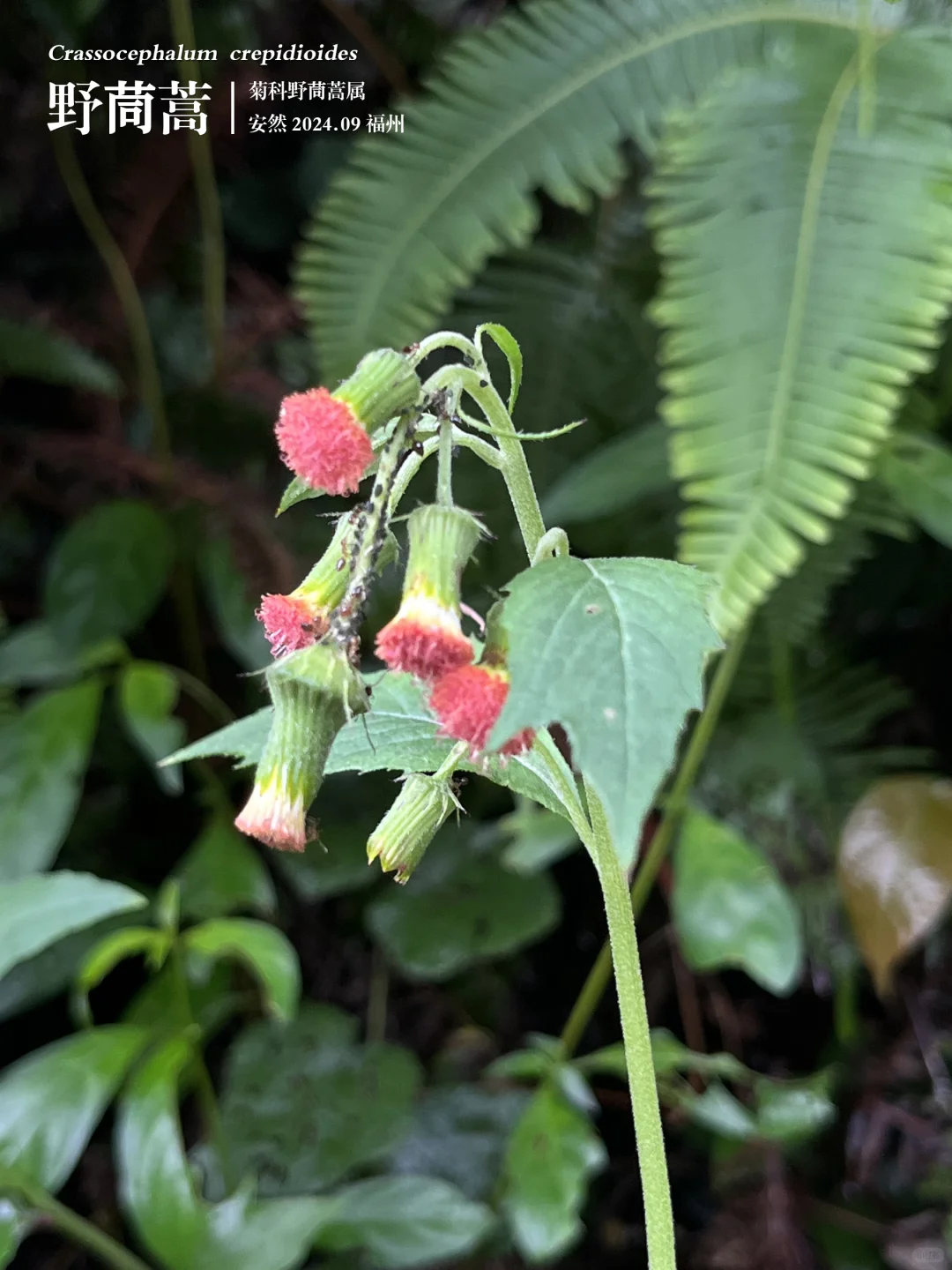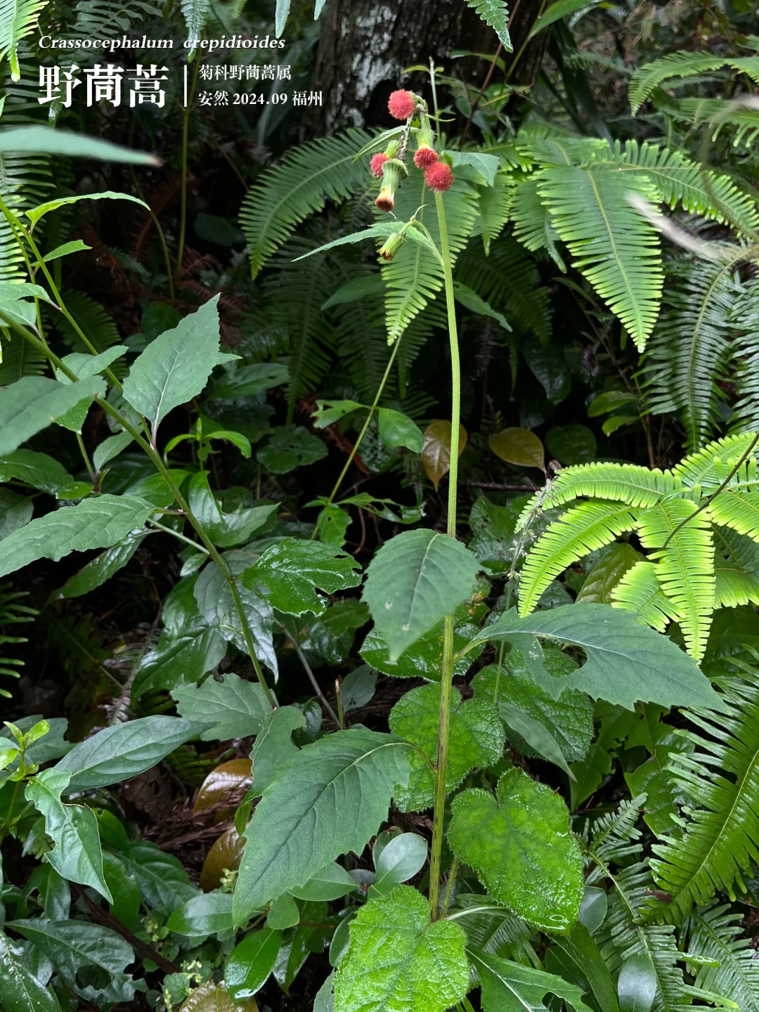 菊科植物都是头状花序,一般人认为的一朵花,其实是无数朵花。大部分菊科植物同时具备舌状花和管状花,比如向日葵,但也有些花仅有管状花,今天介绍的这个野茼蒿就只有管状花,给人感觉非常害羞,仅仅垂头一点橙红,似乎只是含苞待放,没见大开,可随后就谢了,开出类似蒲公英的花。