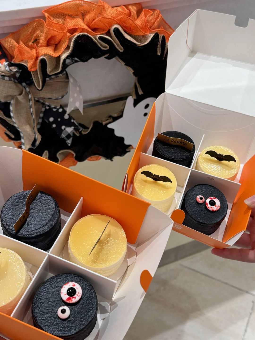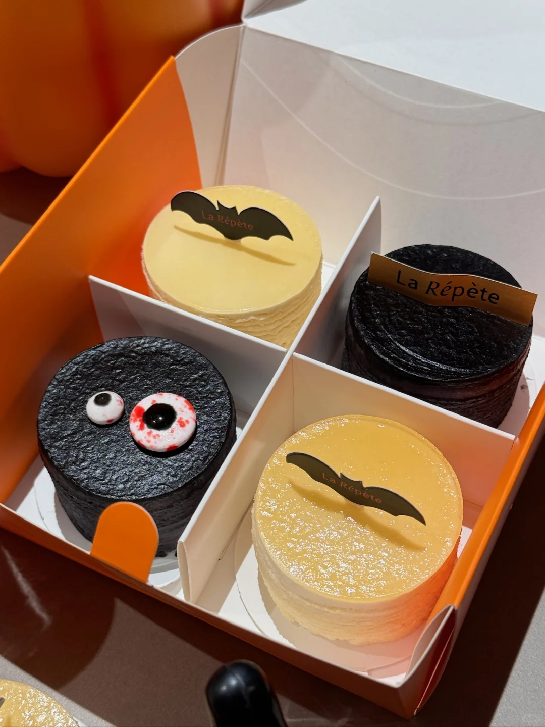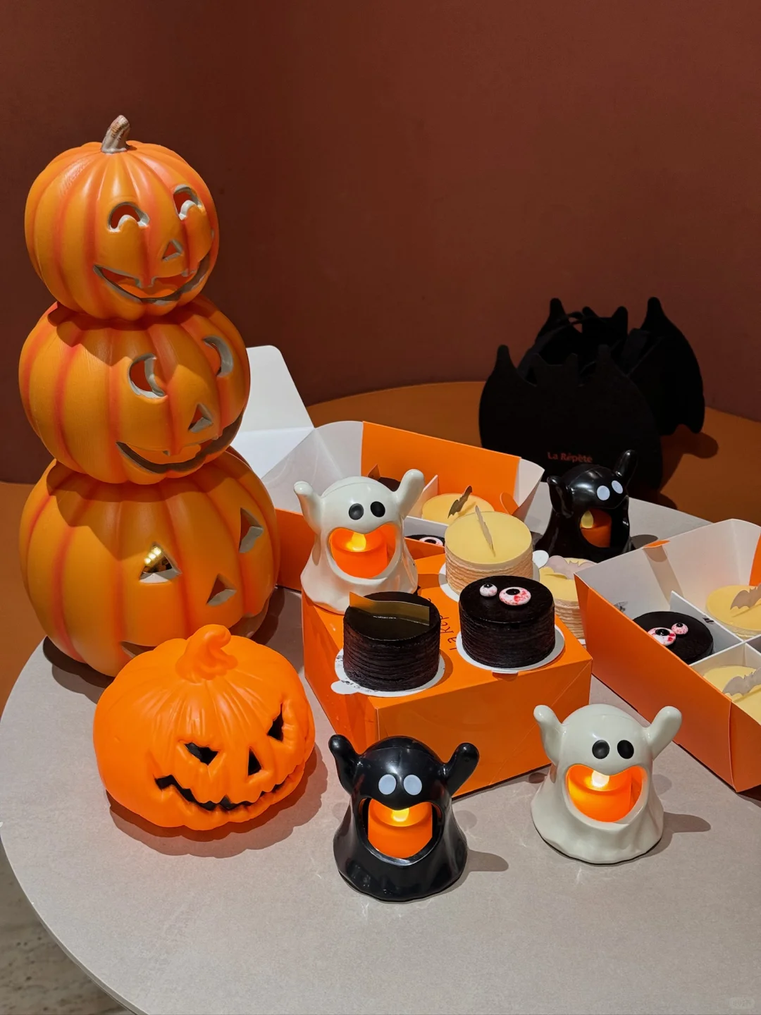 可爱的万圣节新品🆕 节日氛围浓厚! 小恶魔咖啡风味千层蛋糕🍰浓郁的咖啡味,甜而不腻!! 橙子酒风味千层蛋糕,橙子🍊味真的好香啊!! 拍照发朋友圈都超出圈的!!!!