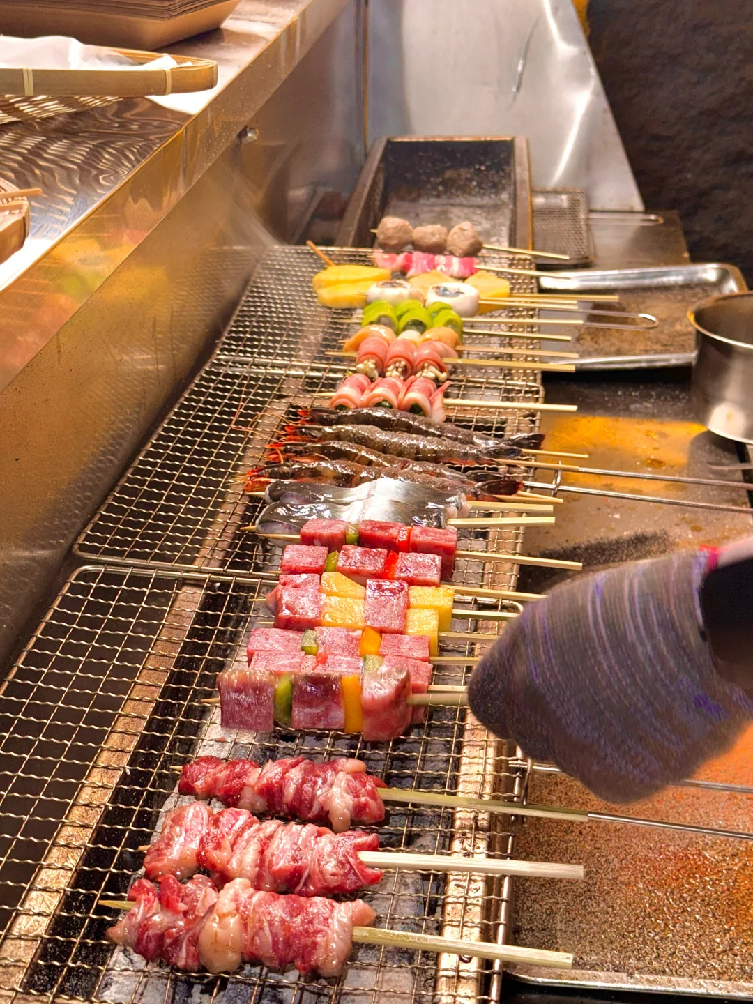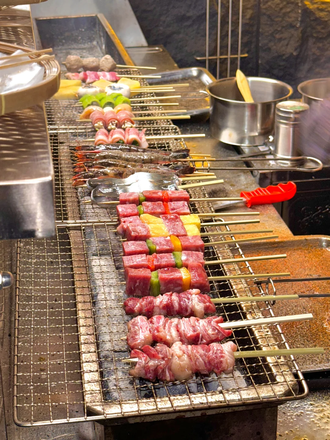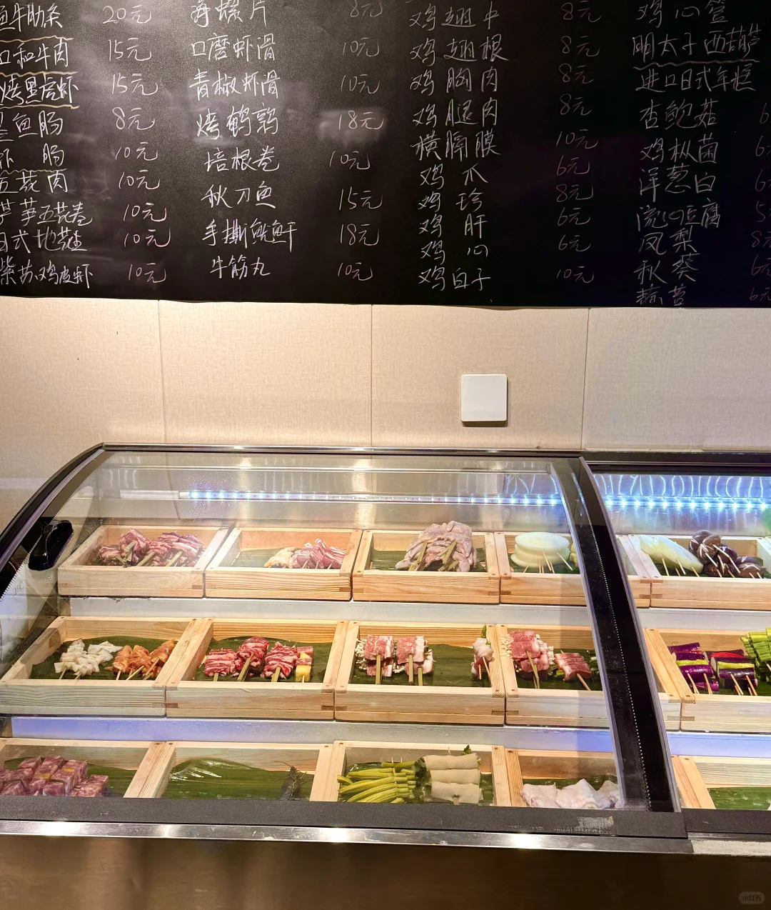 在人民路发现了一家新开的烧鸟店!!挖到宝了!(在一百对面)位置非常好找! - 这里可以选择的食材很多,都是当天现串,喜欢吃烧鸟的朋友们可以来尝尝,但一定要早点来,我昨天去晚了,晚上九点多到的,很多菜都没有了☹️ - ✔️烤凤梨✔️牛肋条✔️京葱鸡腿肉✔️口蘑虾滑✔️爆汁提灯…..都是我喜欢的~,口感丰富,味道很不错👌 下班和朋友来这里撸几串喝点小酒聊聊天太松驰啦~