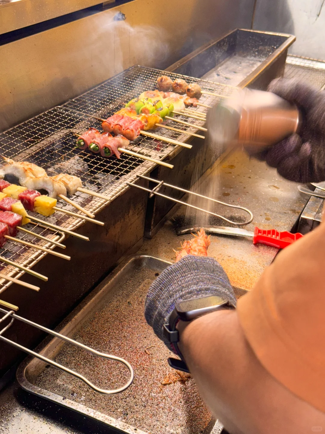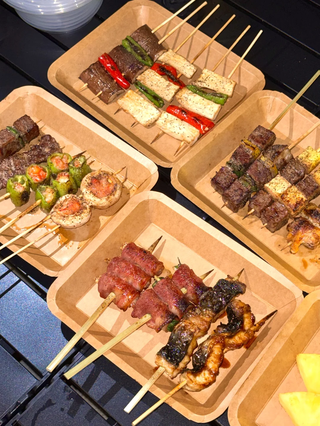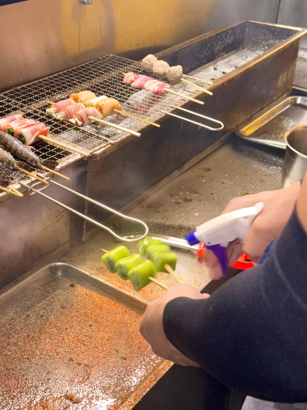 在人民路发现了一家新开的烧鸟店!!挖到宝了!(在一百对面)位置非常好找! - 这里可以选择的食材很多,都是当天现串,喜欢吃烧鸟的朋友们可以来尝尝,但一定要早点来,我昨天去晚了,晚上九点多到的,很多菜都没有了☹️ - ✔️烤凤梨✔️牛肋条✔️京葱鸡腿肉✔️口蘑虾滑✔️爆汁提灯…..都是我喜欢的~,口感丰富,味道很不错👌 下班和朋友来这里撸几串喝点小酒聊聊天太松驰啦~