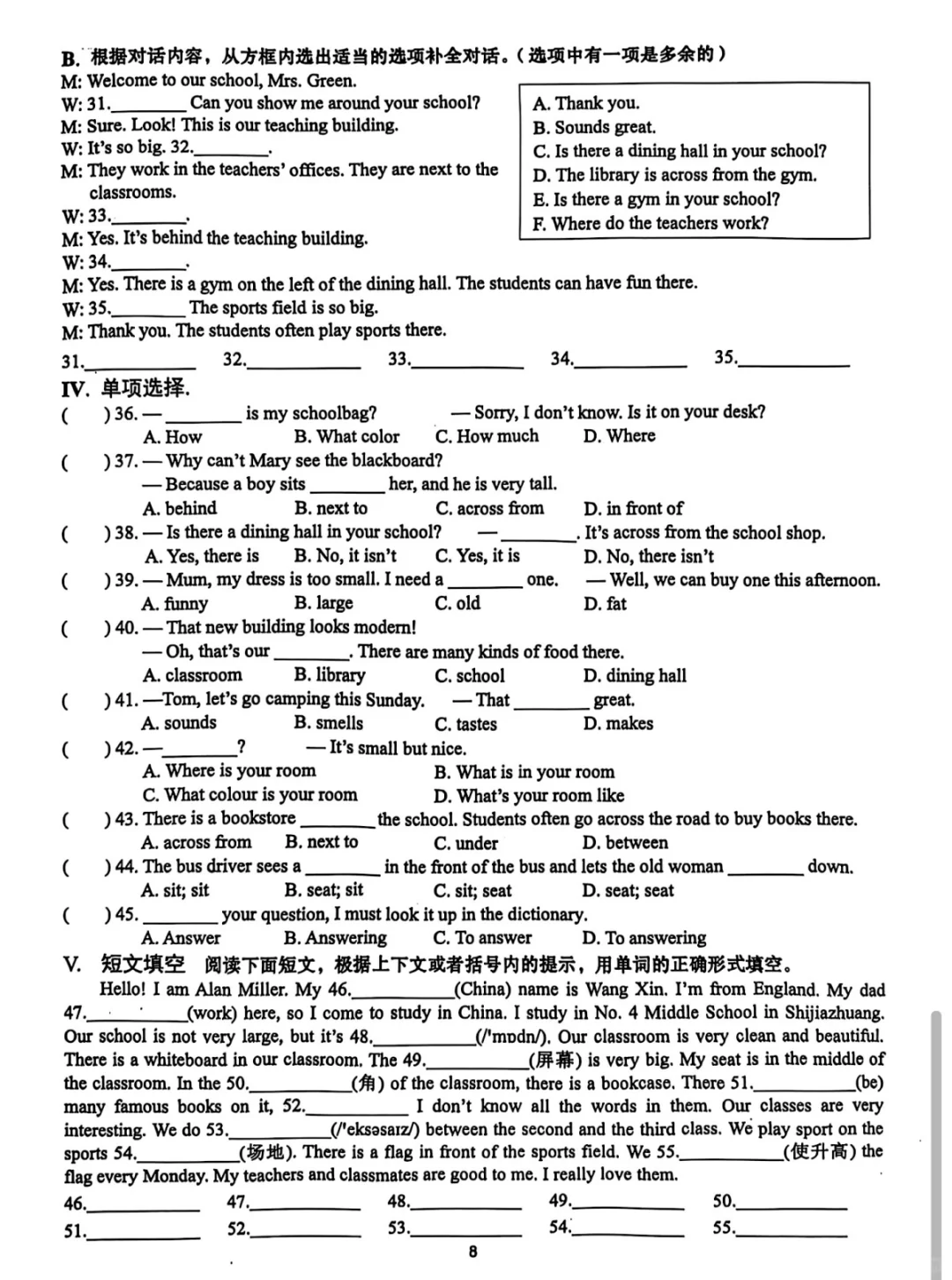 七上新教材期中复习|分单元小卷